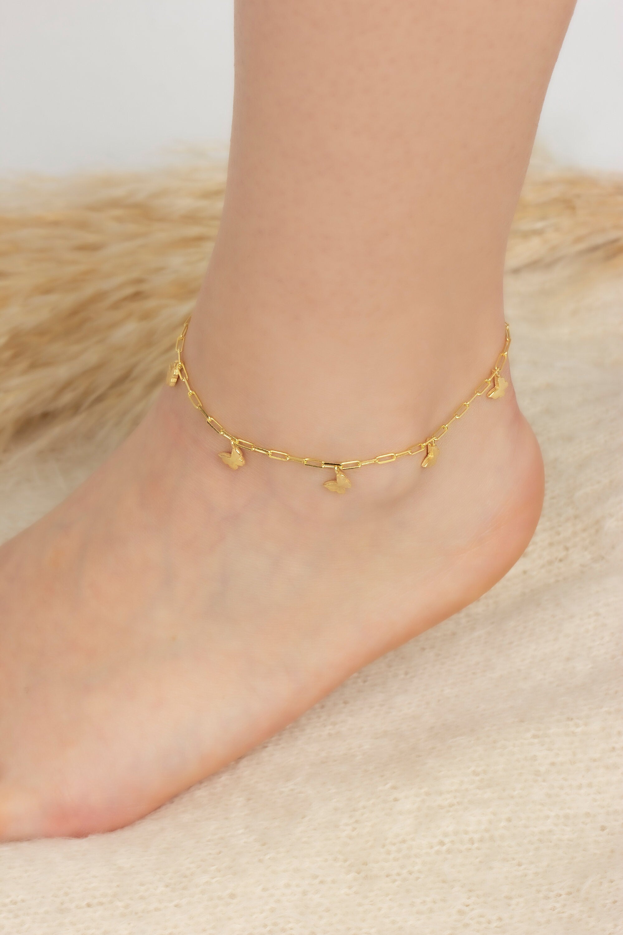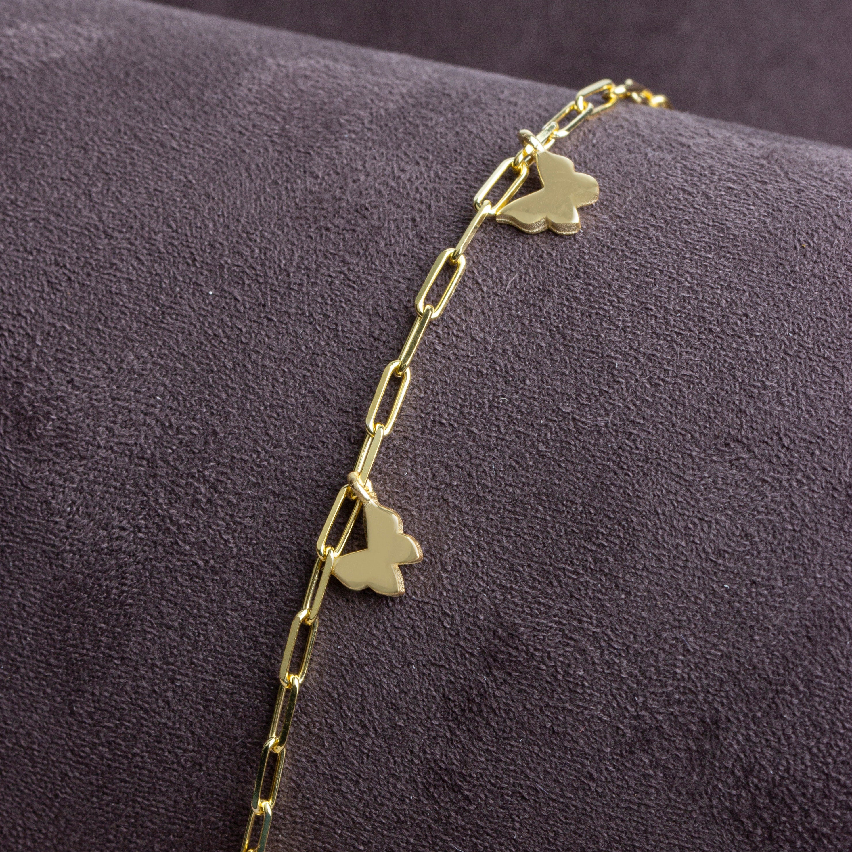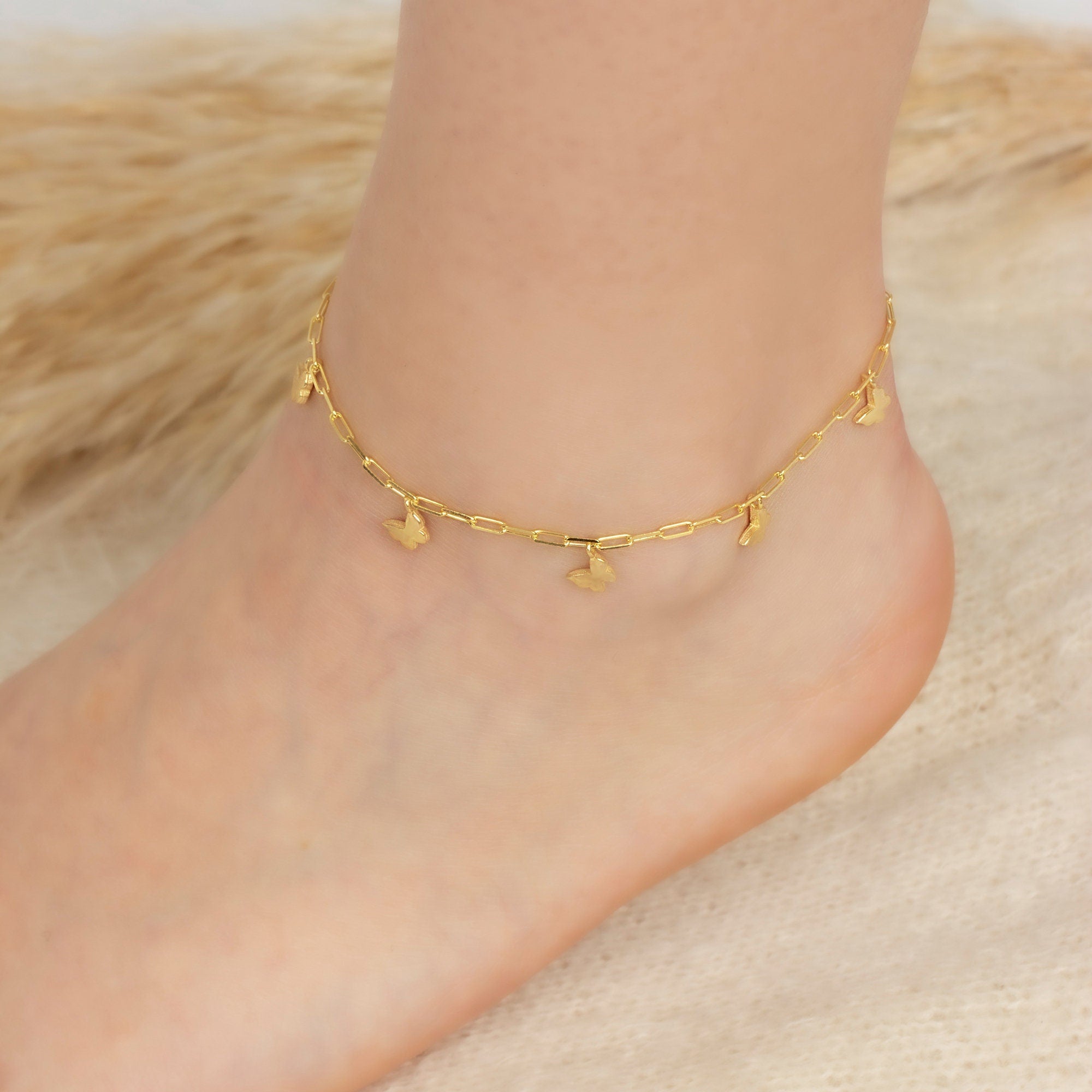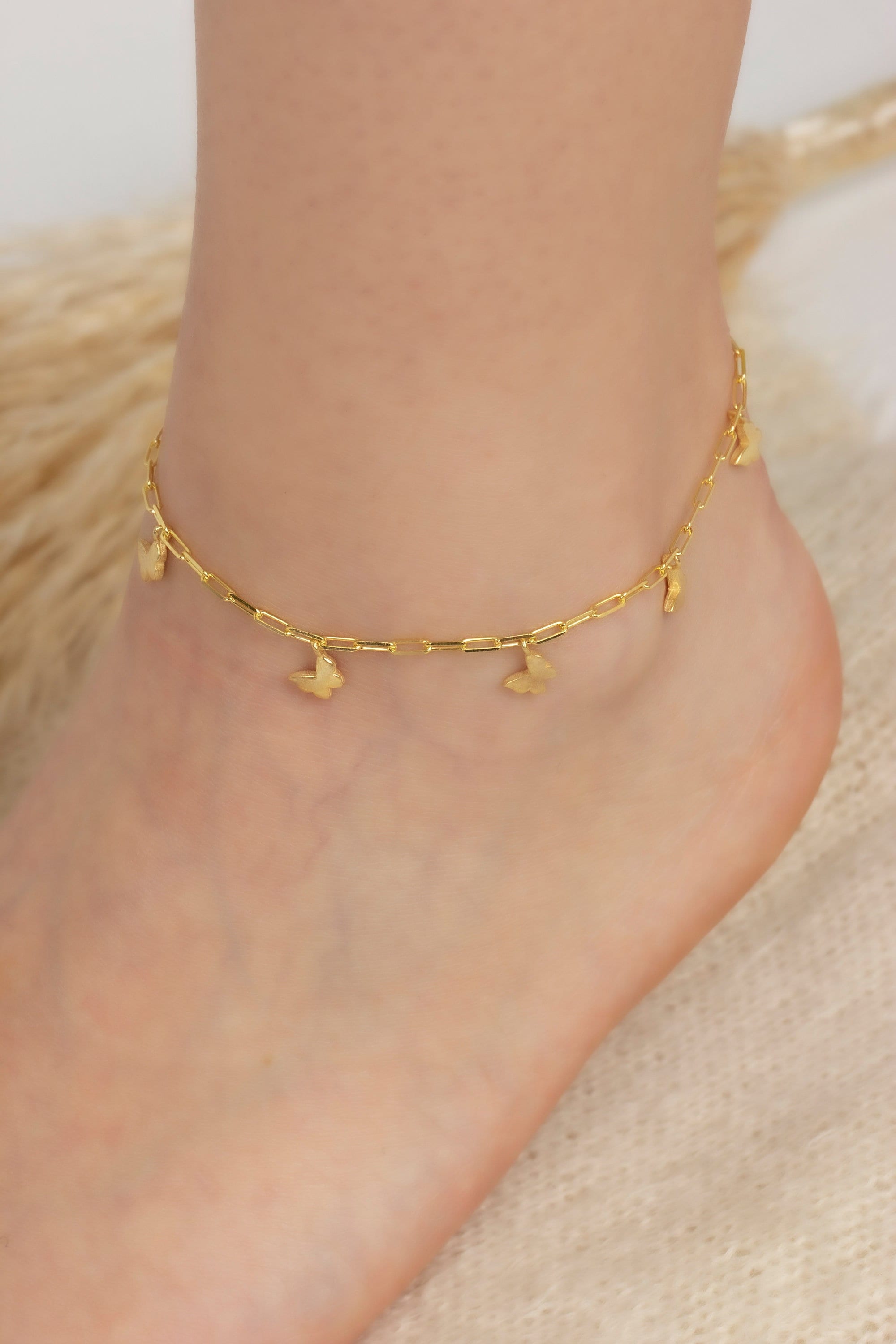 Dainty Silver Dangling Butterflies Anklet is a gorgeous design of Augusta Antonina Fine Jewelry. Butterfly Ankle Bracelet is made from 18K Gold Plated 925 Solid Sterling Silver, handcrafted with love and care by the finest artists. The combination of cute butterfly shapes and elegant paperclip chain creates real classy look. Timeless and delicate anklet design of ours will be perfect match to your every possible outfit like summer party, beach party, beach wedding, holidays and many more.