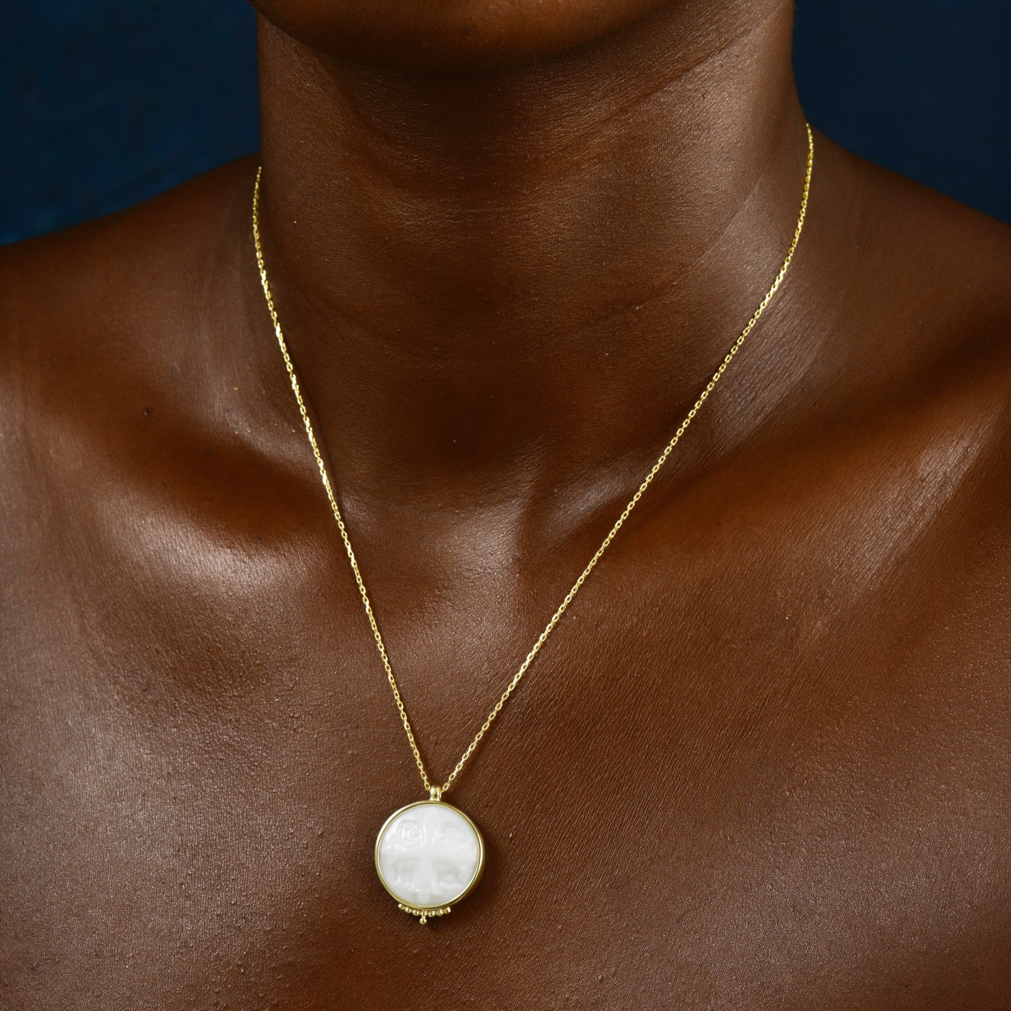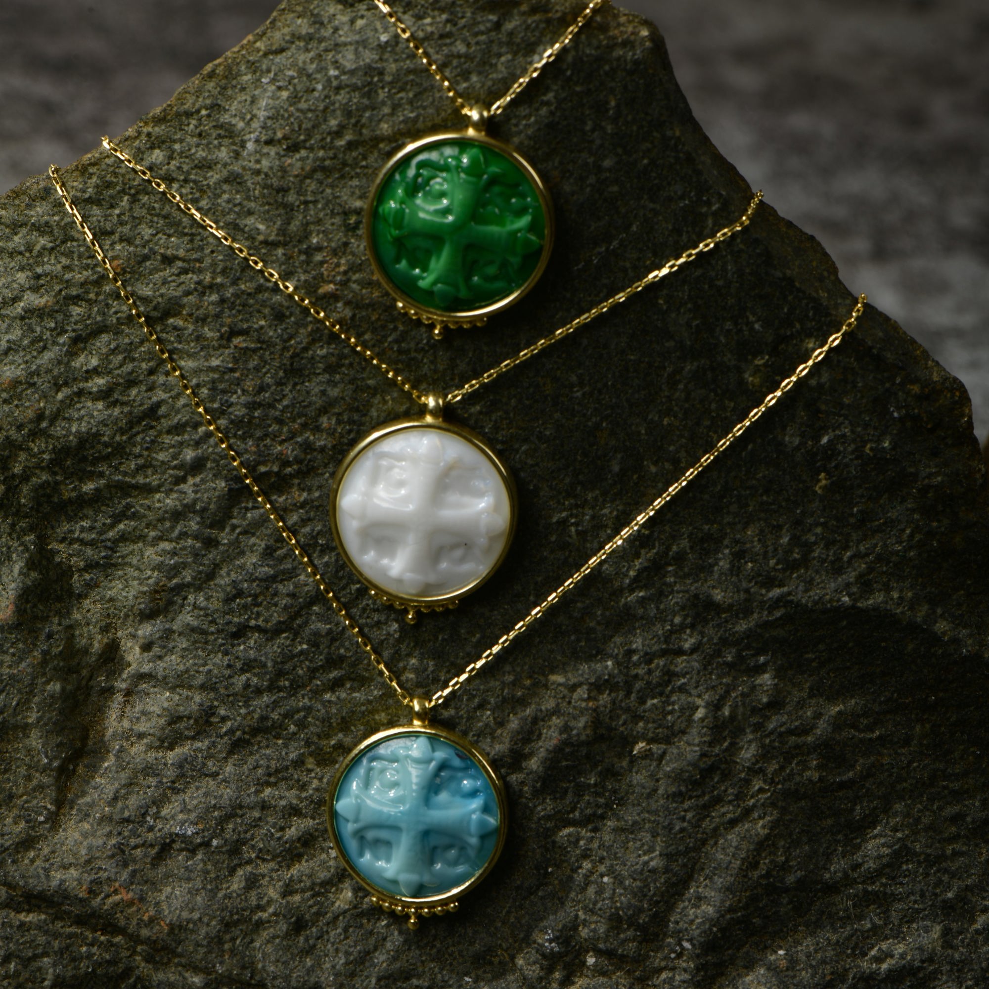 Intaglio Glass Greek Cross Necklace