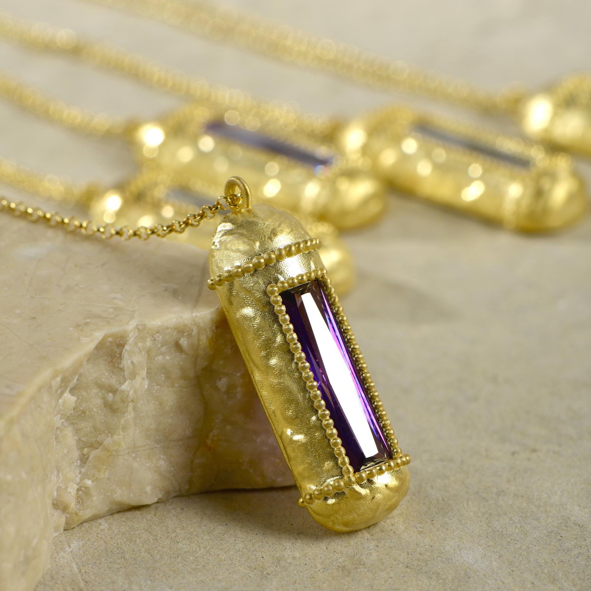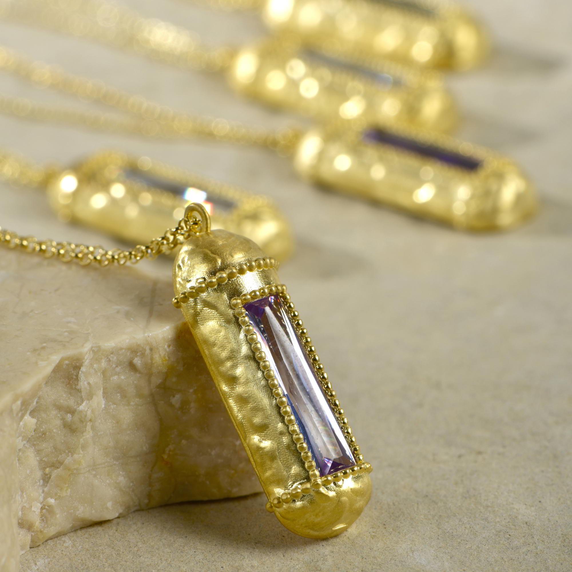 Surface of our celestial birthstone necklace is hand-engraved with a worn, ancient texture, It’s designed to feel like a vessel of quiet strength — something that holds not just a stone, but intention, memory, and inner light. At its center, a single stone is set one of five birthstones, each carefully chosen not only for its beauty, but for the symbolic light it represents: