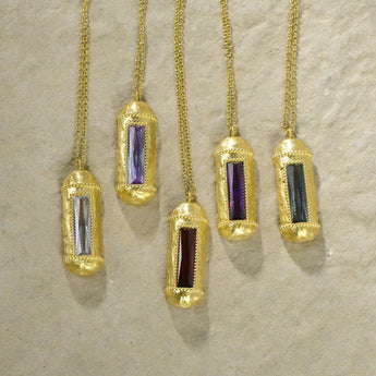Silver Celestial Birthstone Necklace in 24K Gold, Lightkeeper Spiritual Pendant, Ancient Inspired Lumen Vessel Necklace, Unique Boho Jewelry