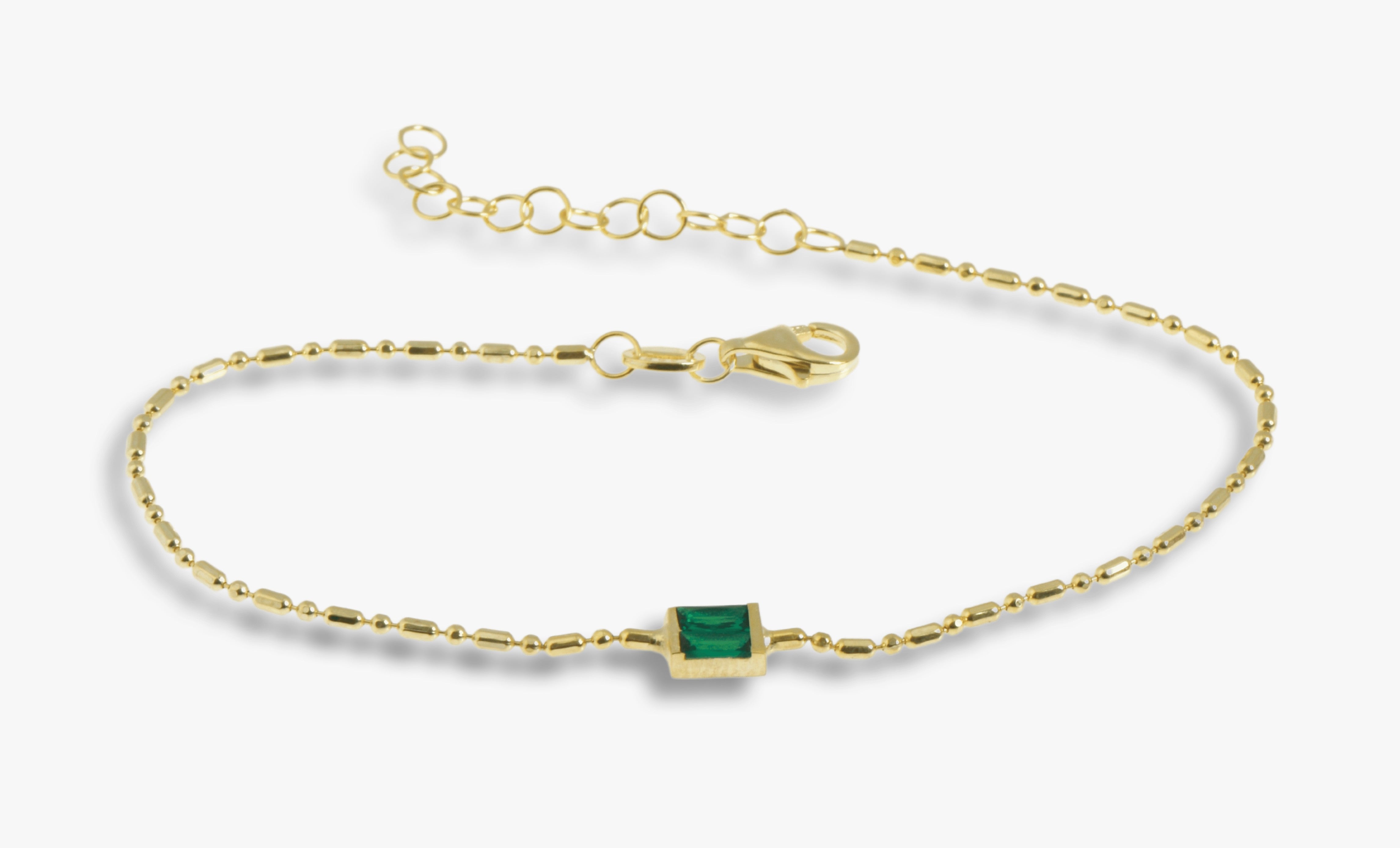 Minimalist Silver Emerald CZ Bracelet is handcrafted by the finest artists with love and care. The combination of Gold Plated delicate chain and square cut emerald CZ Stone meets with 925 Solid Sterling Silver. Dainty May Birthstone Bracelet is made from 18K Gold plated 925 solid sterling silver, emerald cubic zirconia stones. Cute Emerald Bracelet is a perfect match for your outfit and available for everyday using. Dainty Birthstone Bracelet is always awesome gift idea to yourself and your loved ones.