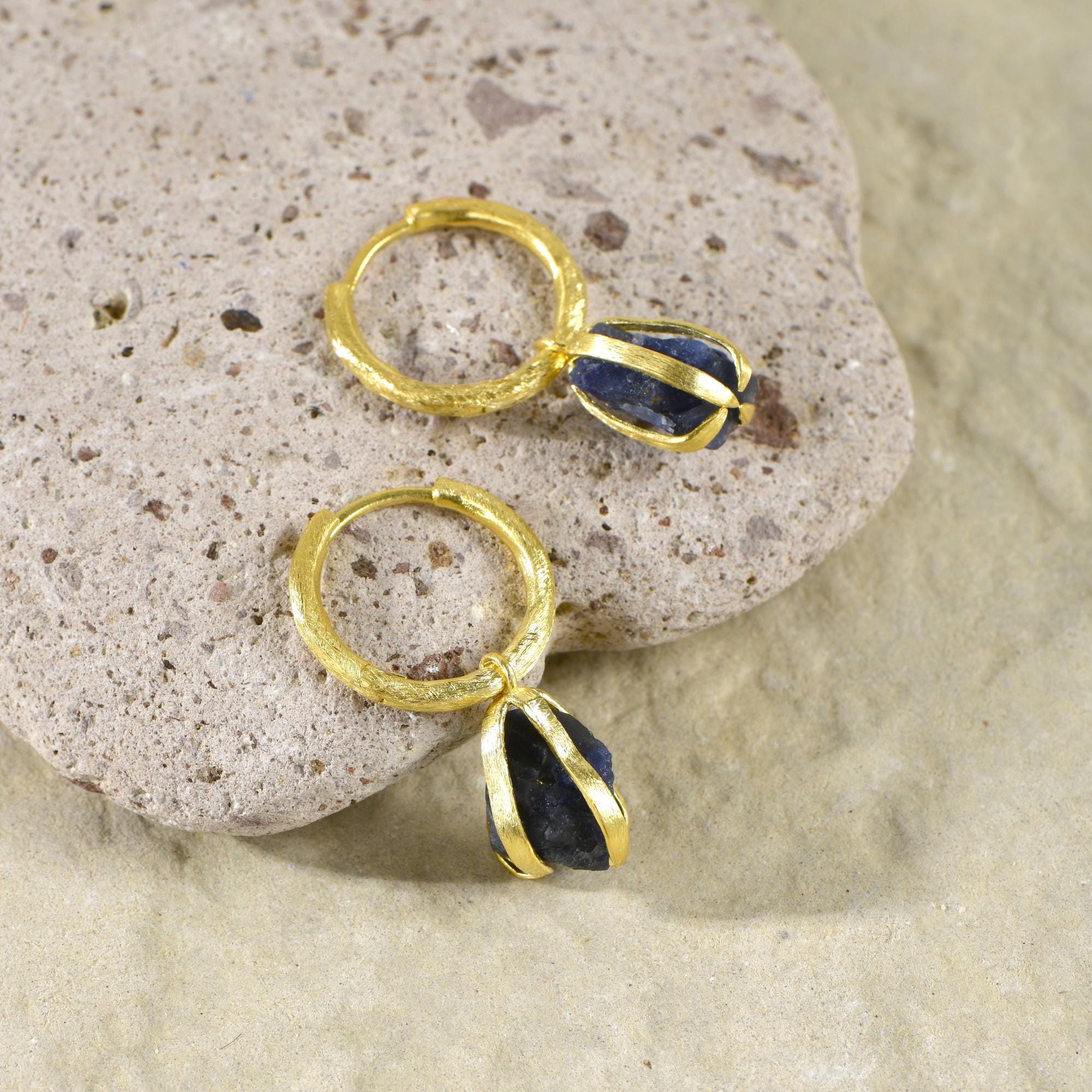 Genuine Raw Tanzanite Hoop Earrings, Natural December Birthstone Earrings in 24K Gold, Real Rough Tanzanite Huggie Hoops, Handmade Jewelry