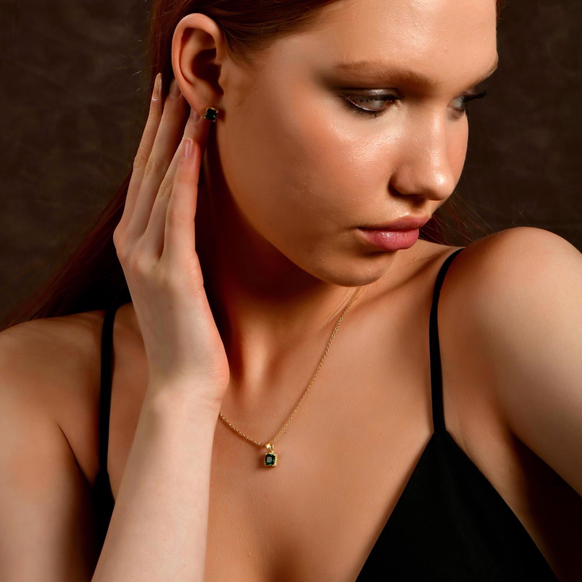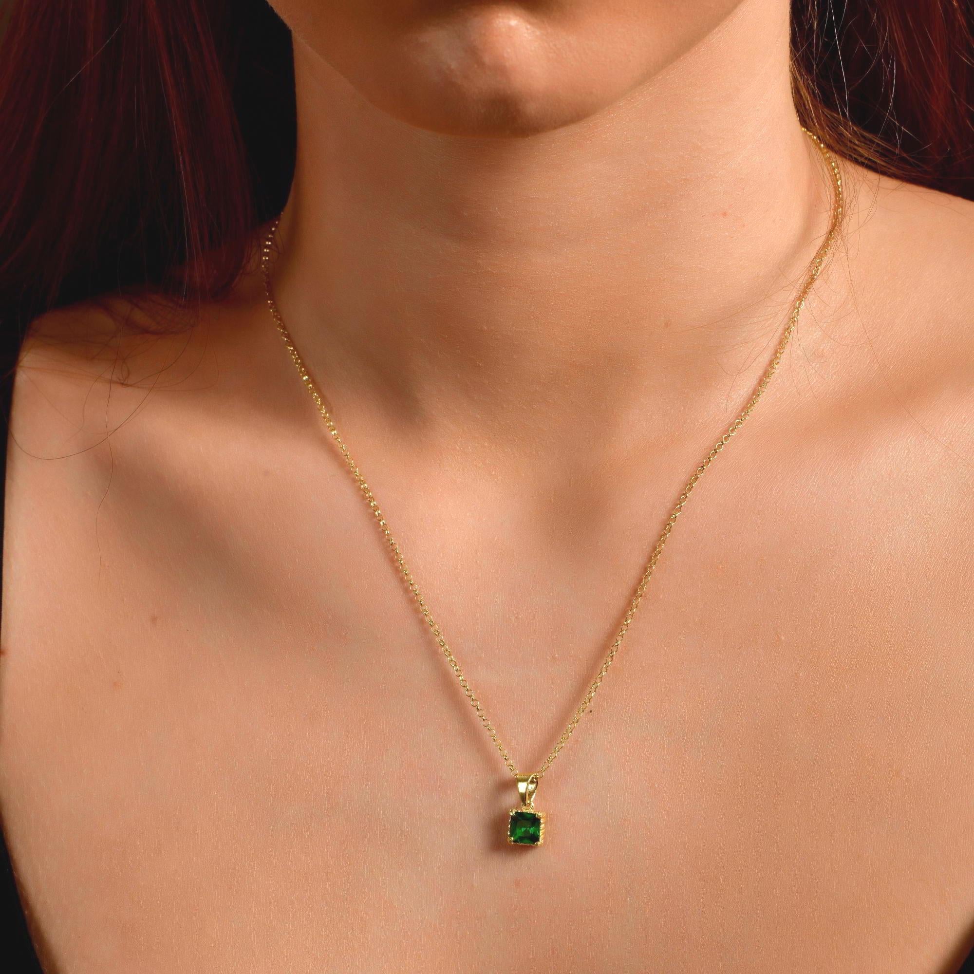 Silver Square Cut Emerald Necklace in 24K Gold, Princess Cut May Birthstone Pendant, Custom Emerald Green Gemstone Charm, Jewelry For Women