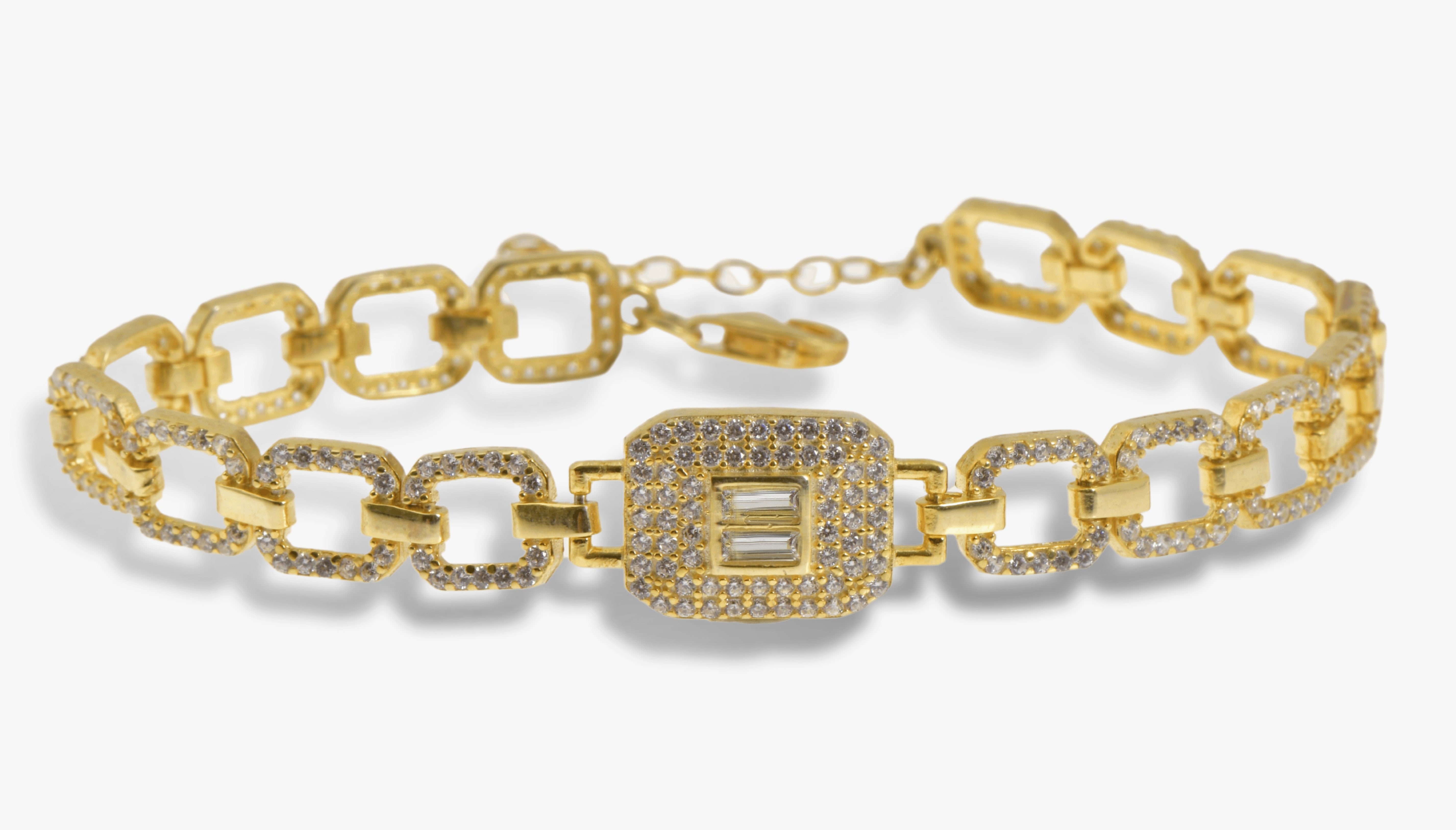 This adorable Gold Plated and Rhodium Plated Baguette CZ Diamond Cut Bracelet is what you're looking for.