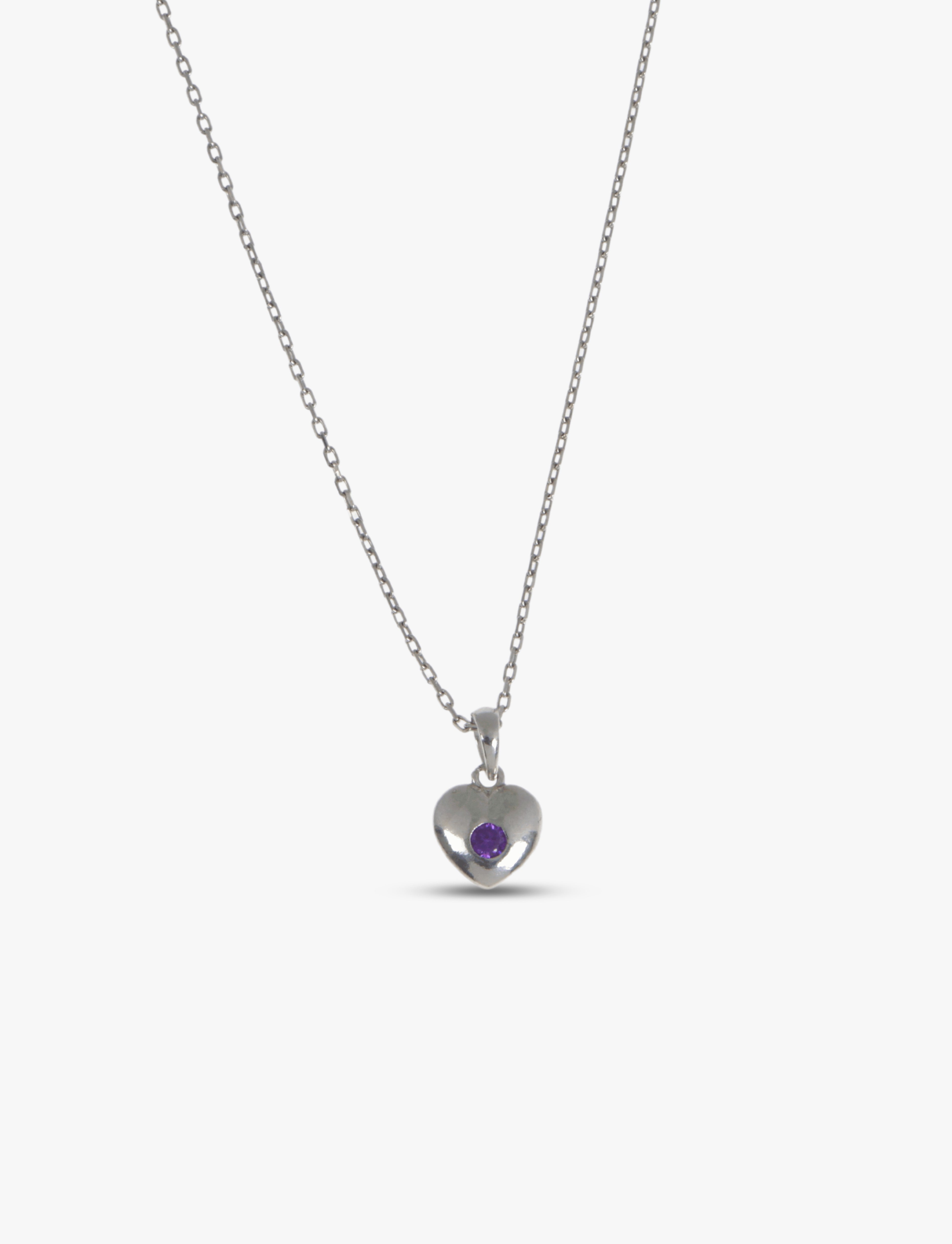 Minimalist Silver Heart Necklace, Tiny Amethyst Heart Pendant, Small Heart Charms with Birthstones, Cute Birthstone Jewelry, Gift For Her