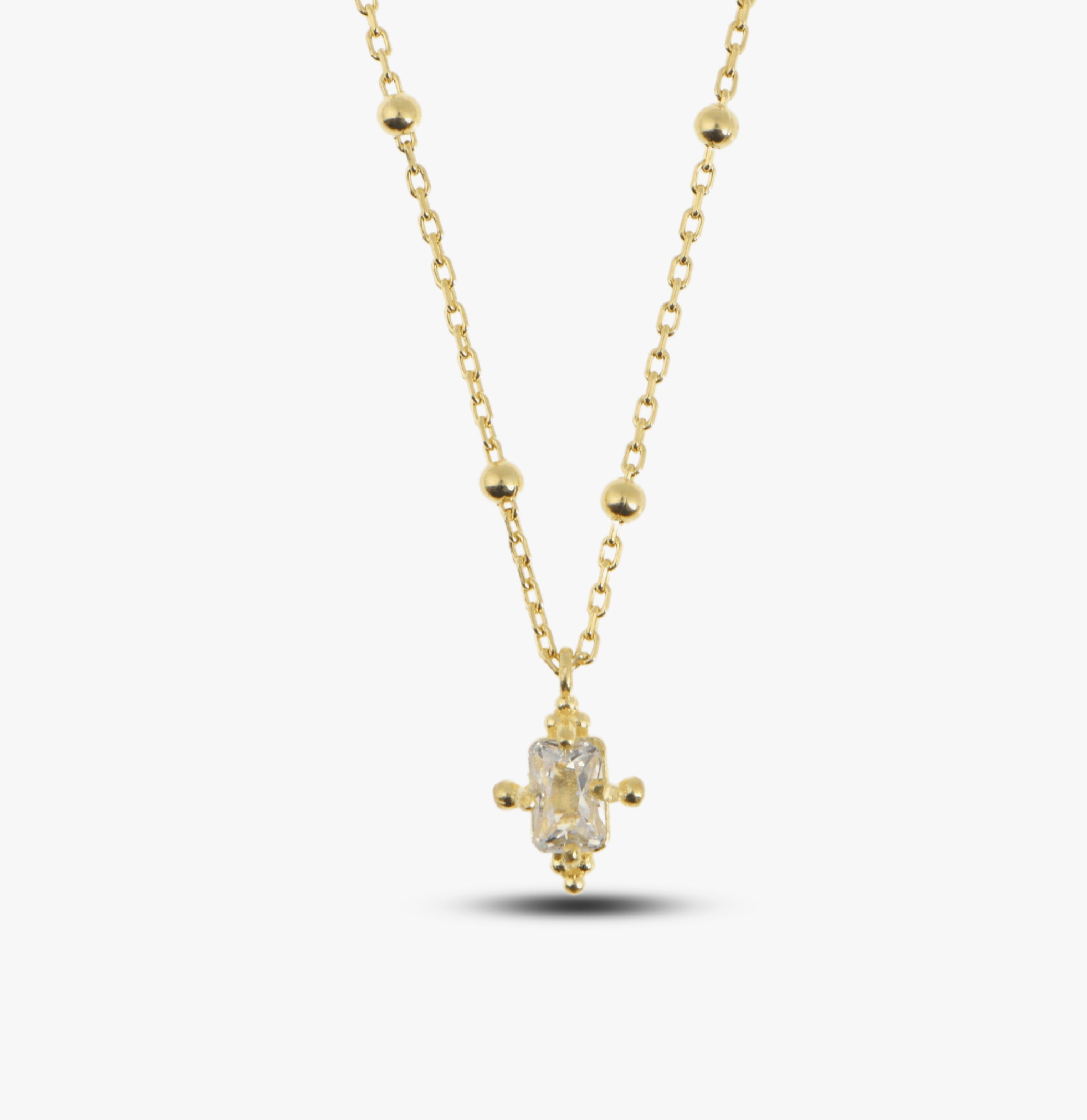 Meet the Minimalist and Antique Designed Silver CZ Diamond Necklace, one of the most special pieces in Augusta Antonina's latest collection! April Birthstone Necklace is entirely handcrafted, with the edges of the pendant given an antique look using a special aging technique and made from 24K Gold Plated 925 Sterling Silver. The dazzling beauty of the Baguette Cut White Cubic Zirconia Diamond has been transformed into a unique form through this technique. To elevate this one-of-a-kind piece, a 2.5mm special satellite chain has been used. Additionally, a special micron 24K Gold Plating technique ensures the lasting brilliance of this design. Discover the unique details of this exceptional creation, crafted to touch your soul, below.