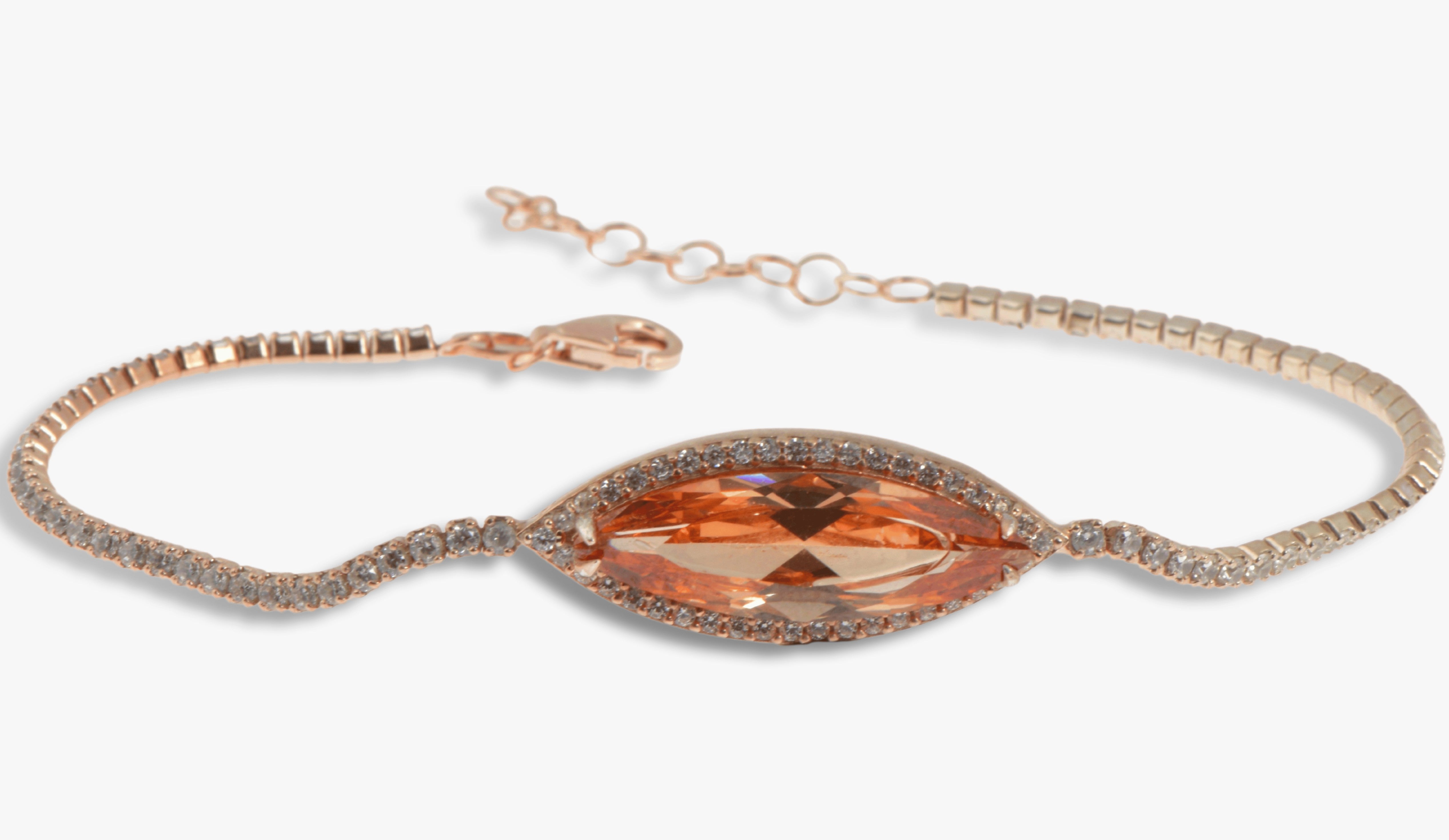 This gorgeous silver tennis bracelet with Orange Crystal Stone is handcrafted with love and care by the finest artists. This sterling silver Topaz Crystal Bracelet is Rose Gold Plated and made from 925 High Quality Solid Sterling Silver, high quality white cubic zirconia stones and orange crystal stone middle of it. It brings you more elegance and style to reflect your personality. Augusta Antonina made this gorgeous ellipse shaped orange swarovski tennis bracelet for you and your loved ones.