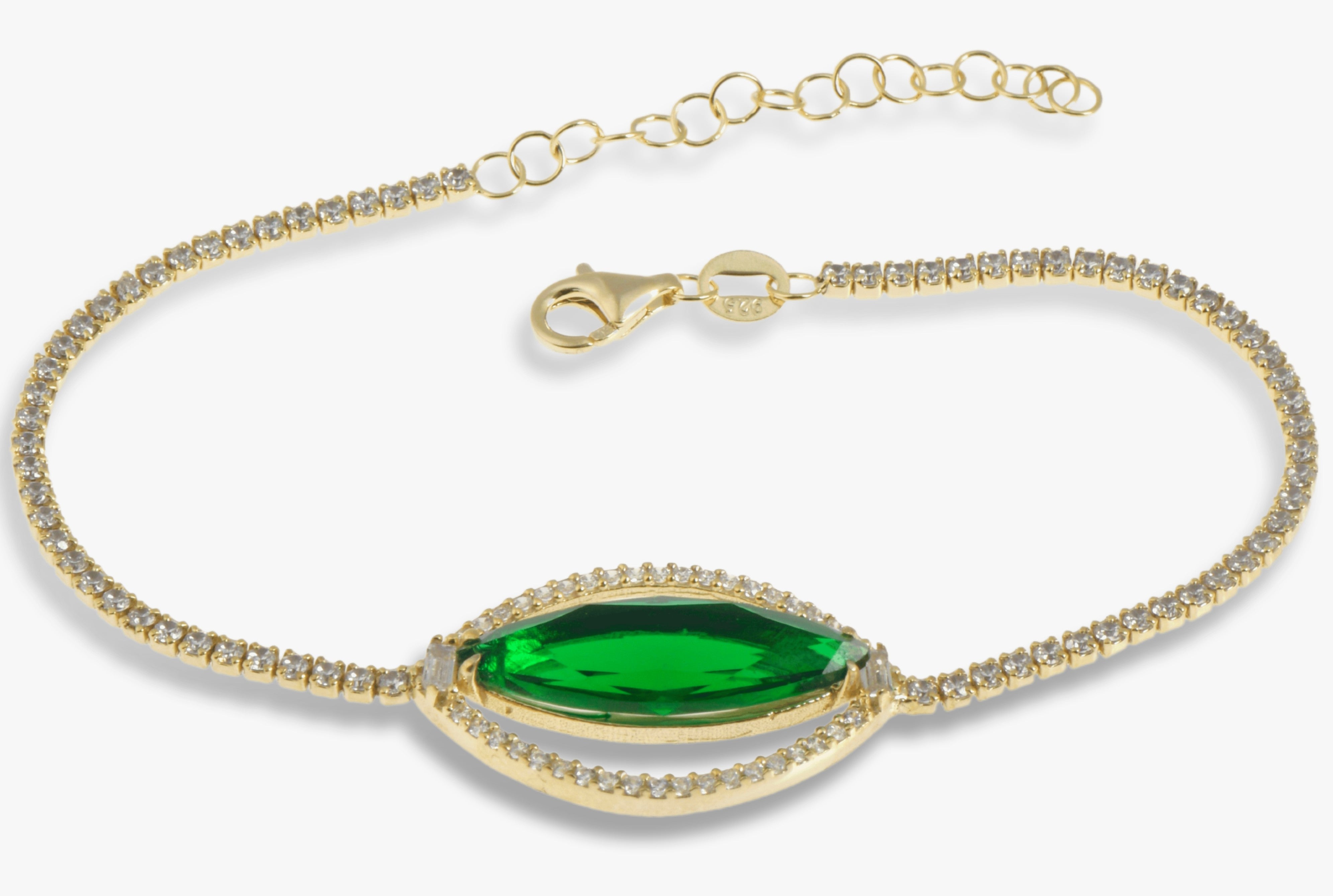 Silver CZ Tennis Bracelet with Oval Cut Emerald is one of our beautifully crafted jewelry. Discover the elegance of emerald by Augusta Antonina! May Birthstone Bracelet is made from 18K Gold Plated High Quality 925 Solid Sterling Silver, Oval Shape Emerald Green CZ Stone and white cubic zirconia stones. The harmony of Emerald CZ Stone and White CZ Diamonds tells the story behind this unique jewelry. Dainty Emerald Bracelet is perfect gift for yourself and your loved ones.