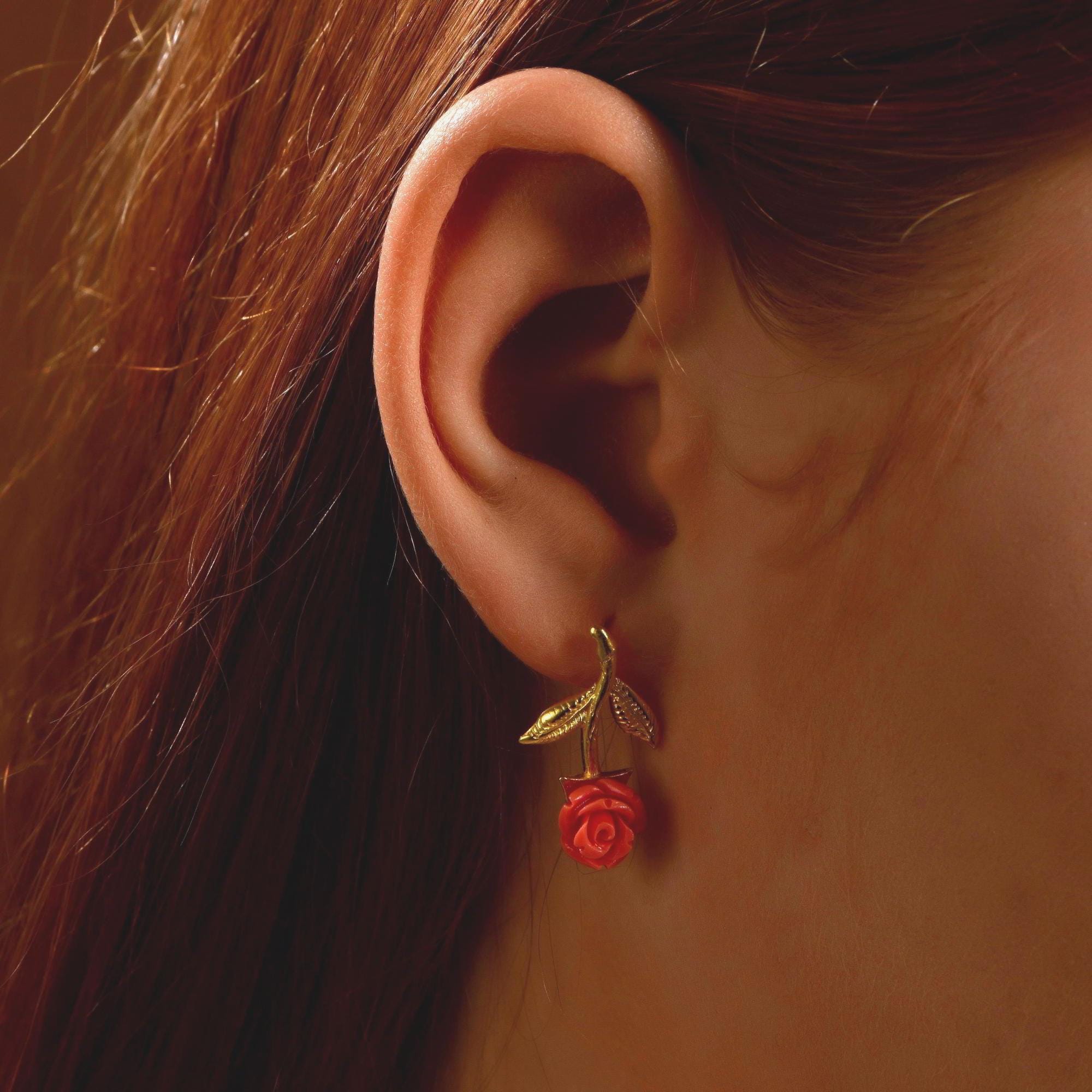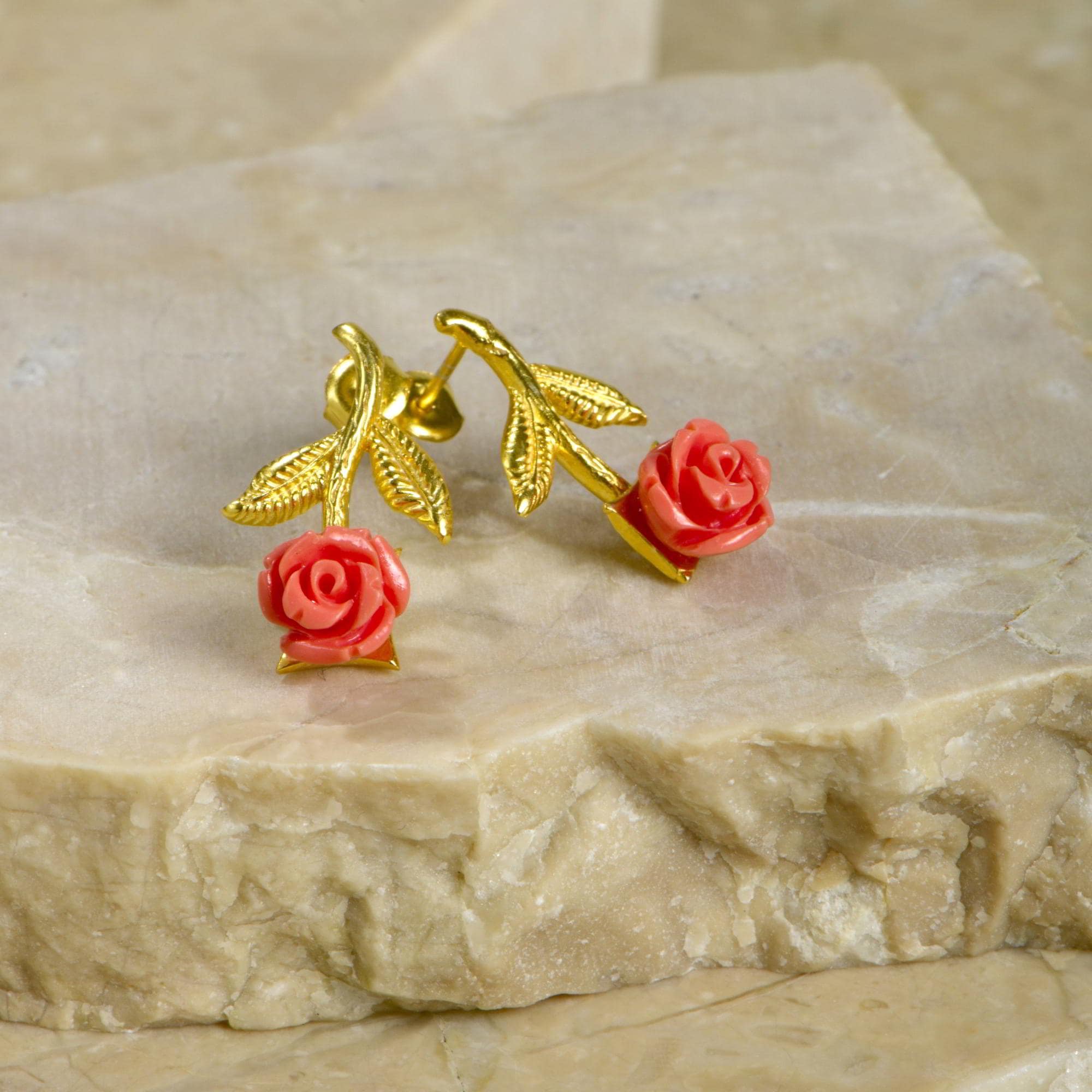 For a complete look, pair these earrings with the matching Pink Coral Rose Necklace and Ring from the same collection to create a harmonious jewelry set that embodies delicate craftsmanship and lasting sophistication.