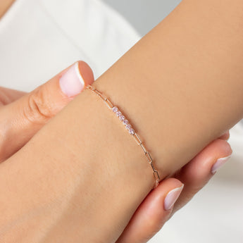 Sterling Silver Amethyst CZ Bracelet is handcrafted by the finest artists with love and care. The combination between Rose Gold Plated Paperclip chain and Purple CZ Bar meets with 925 Solid Sterling Silver. Dainty February Birthstone Bracelet is made from 925 Solid Sterling Silver, purple cubic zirconia stones. Tiny Amethyst Bracelet is a perfect match to your outfit and available for daily using. Dainty Purple Amethyst Bracelet is always awesome gift idea to yourself and your loved ones.