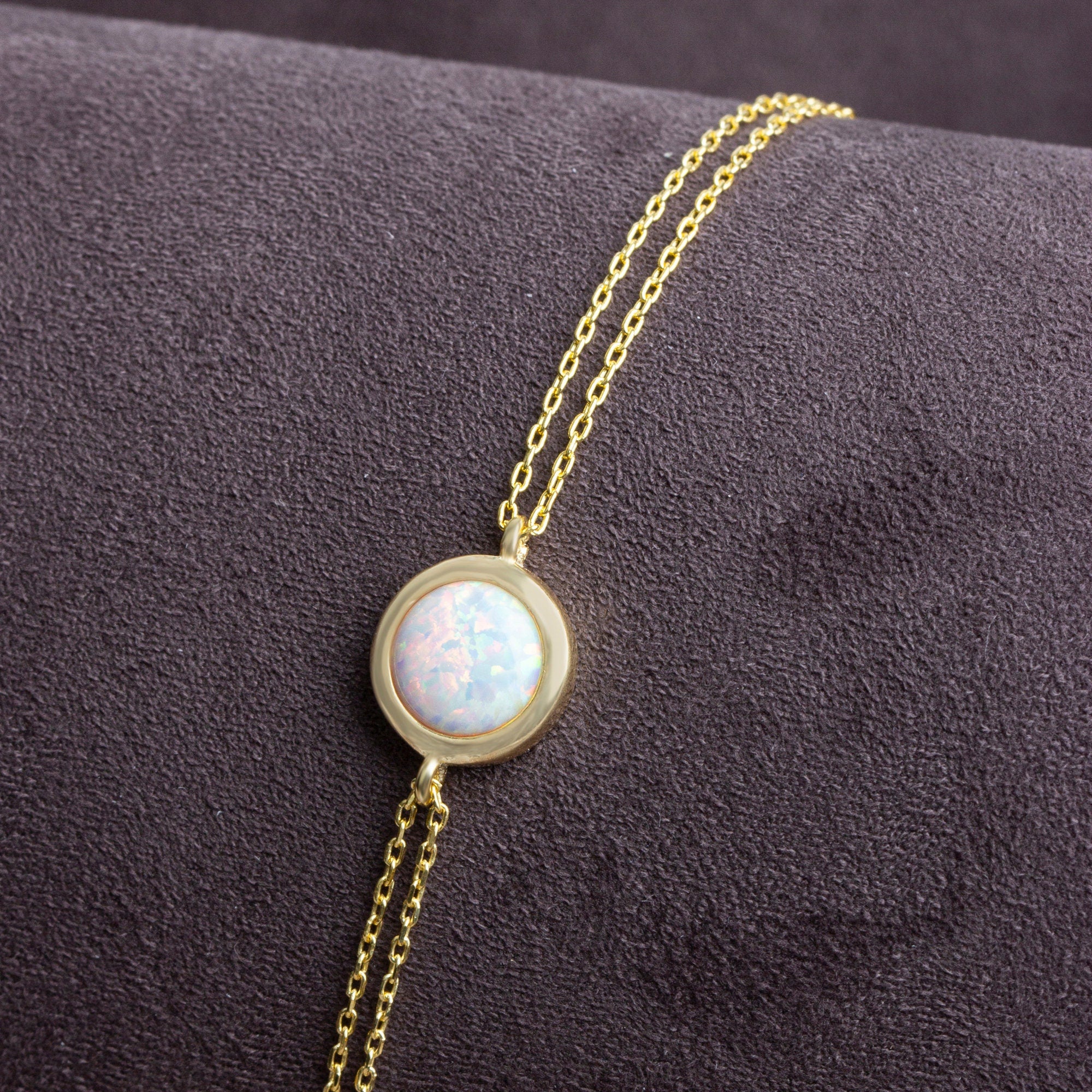 14K Gold Plated Sterling Silver Opal Bracelet is handcrafted with love and care by the finest artists. Minimalist Opal Bracelet made from 14K Gold Plate adjustable chain, high quality solid sterling silver and natural opal stone. Dainty 14K Gold Opal Bracelet is always a great gift idea for you and your loved ones.