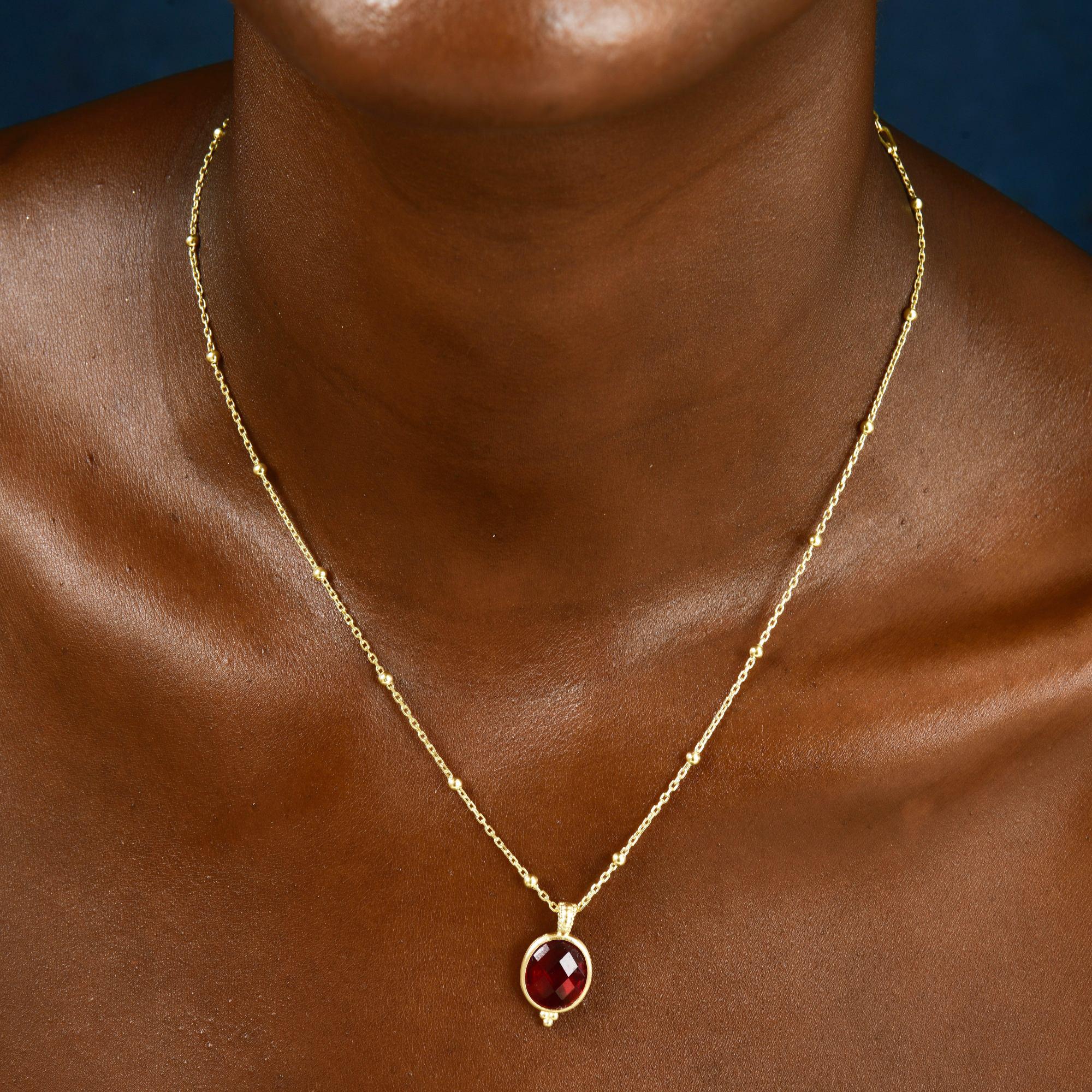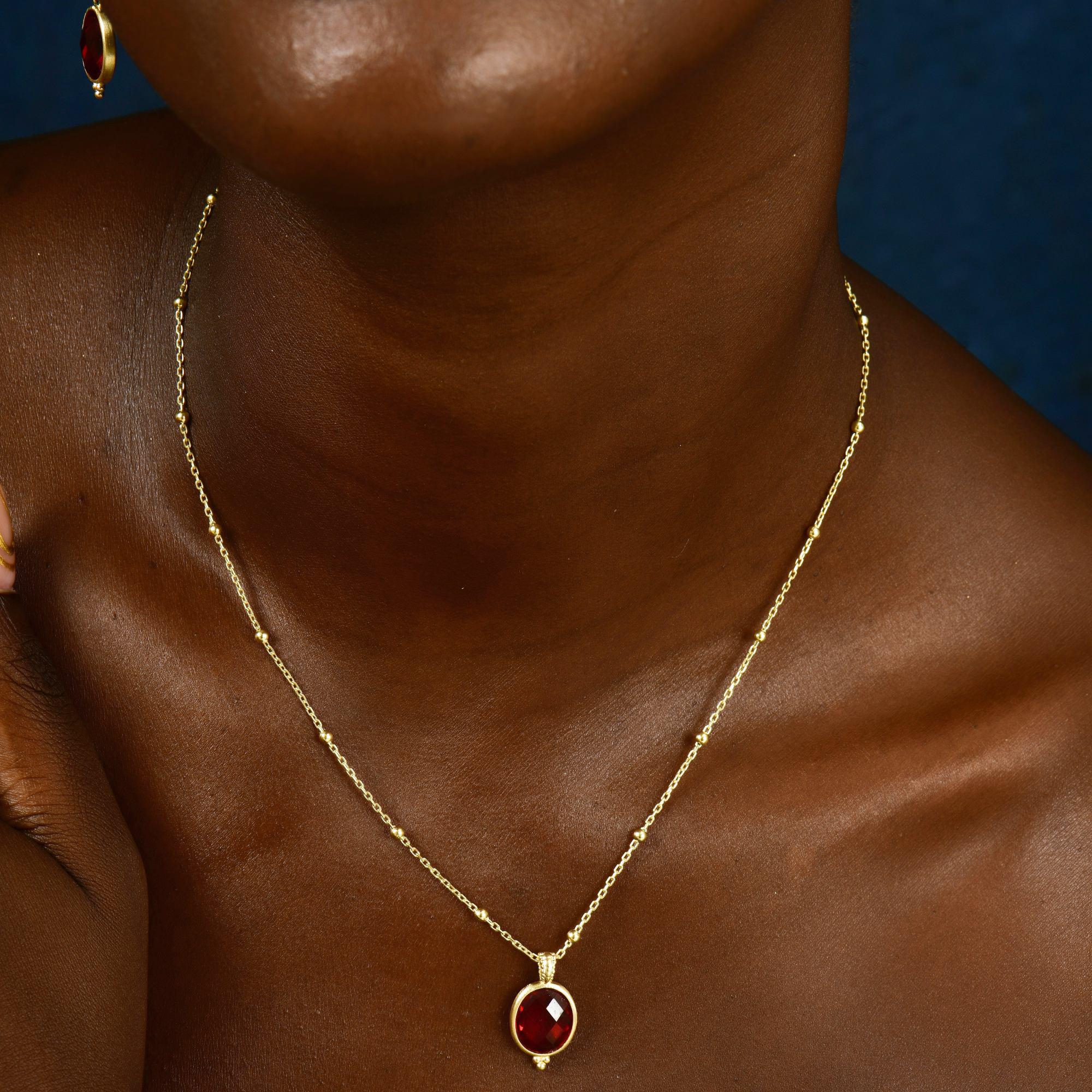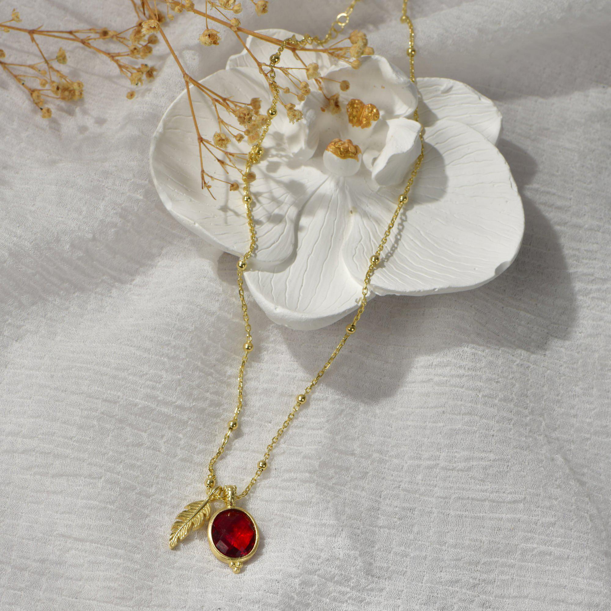Meet the Silver Ruby Gemstone Necklace, one of the most special pieces in Augusta Antonina's latest collection! Dainty July Birthstone Necklace is entirely handcrafted, with the edges of the pendant given an antique look using a special aging technique and made from 24K Gold Plated 925 Sterling Silver. The dazzling beauty of the Ruby crystal has been transformed into a unique form through this technique. To elevate this one-of-a-kind piece, a 2.5mm special satellite chain has been used. Additionally, a special micron 24K Gold Plating technique ensures the lasting brilliance of this design. Discover the unique details of this exceptional creation, crafted to touch your soul, below.