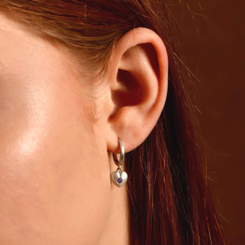 All puff heart earrings are part of our birthstone jewelry line and can be perfectly matched with our Tiny Puff Heart Birthstone Necklaces, available in the same finishes and stones. Whether worn as a set or on their own, these minimalist silver drop heart hoop earrings are ideal for gifting, stacking, or everyday wear.