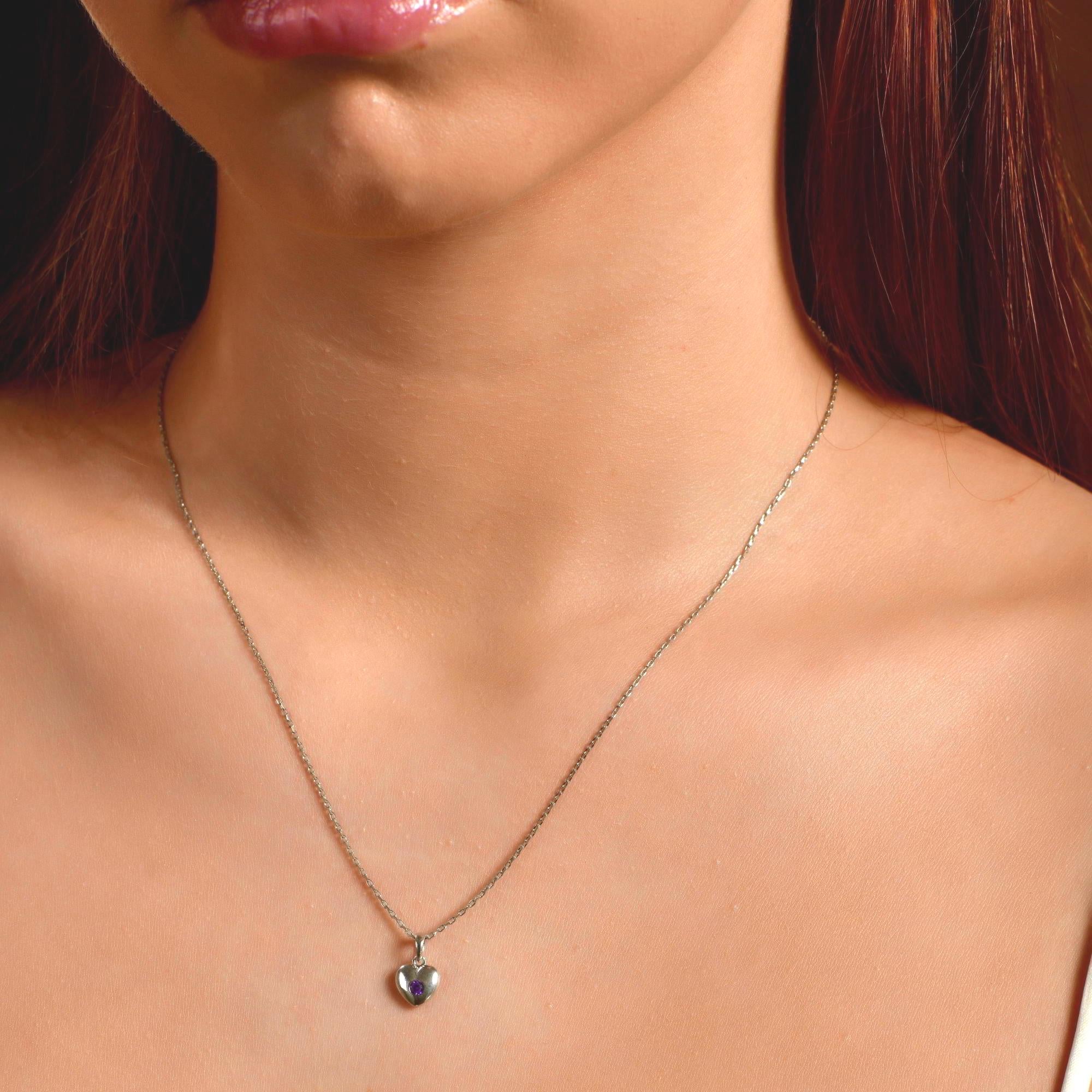 Minimalist Silver Heart Necklace, Tiny Amethyst Heart Pendant, Small Heart Charms with Birthstones, Cute Birthstone Jewelry, Gift For Her