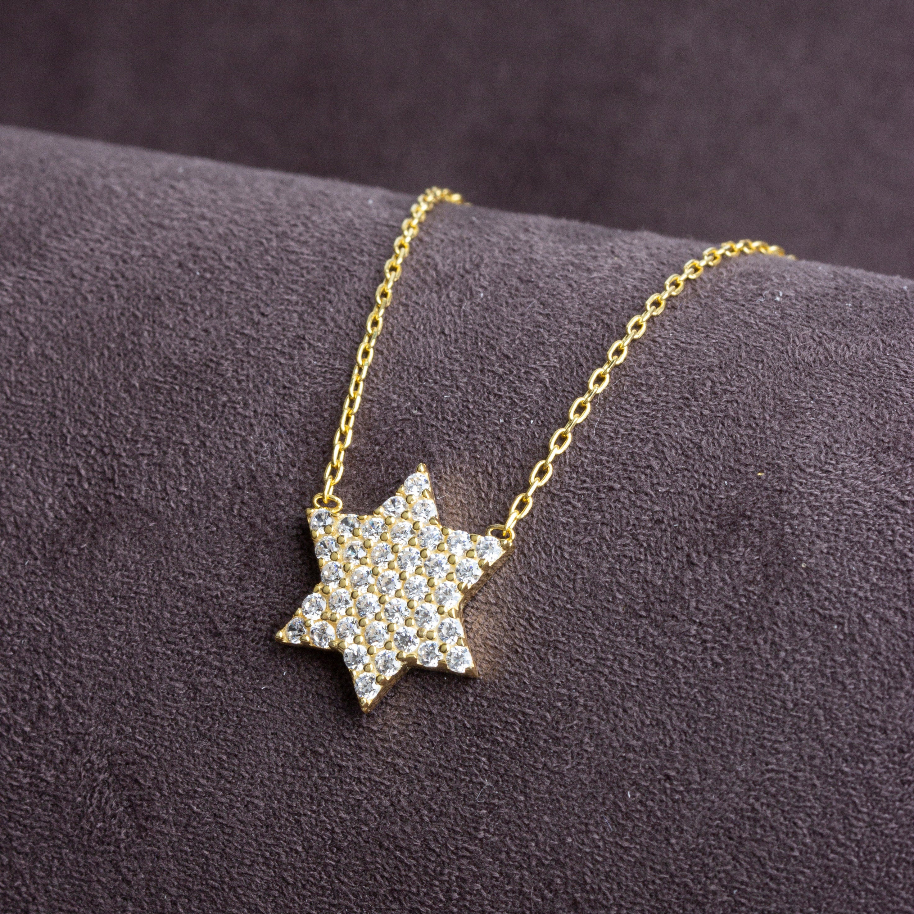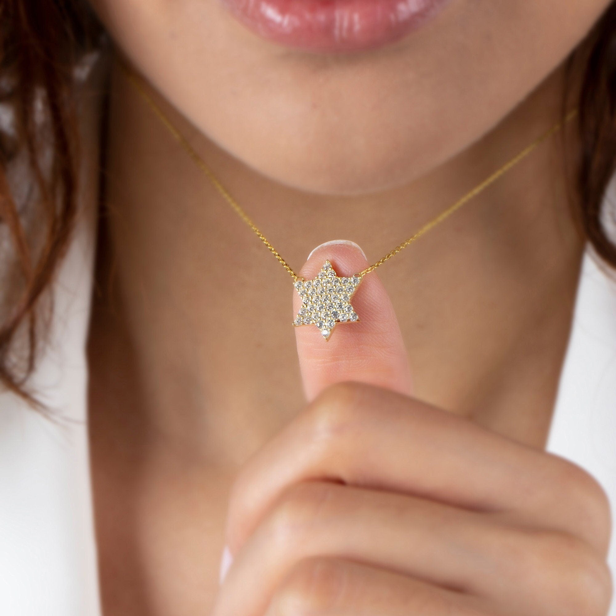 Minimalist Silver Star CZ Necklace in 18K Gold, CZ Diamond Hexagon Star Neckace, Star of David Pendant, Cute Jewelry, Christmas Gift For Her