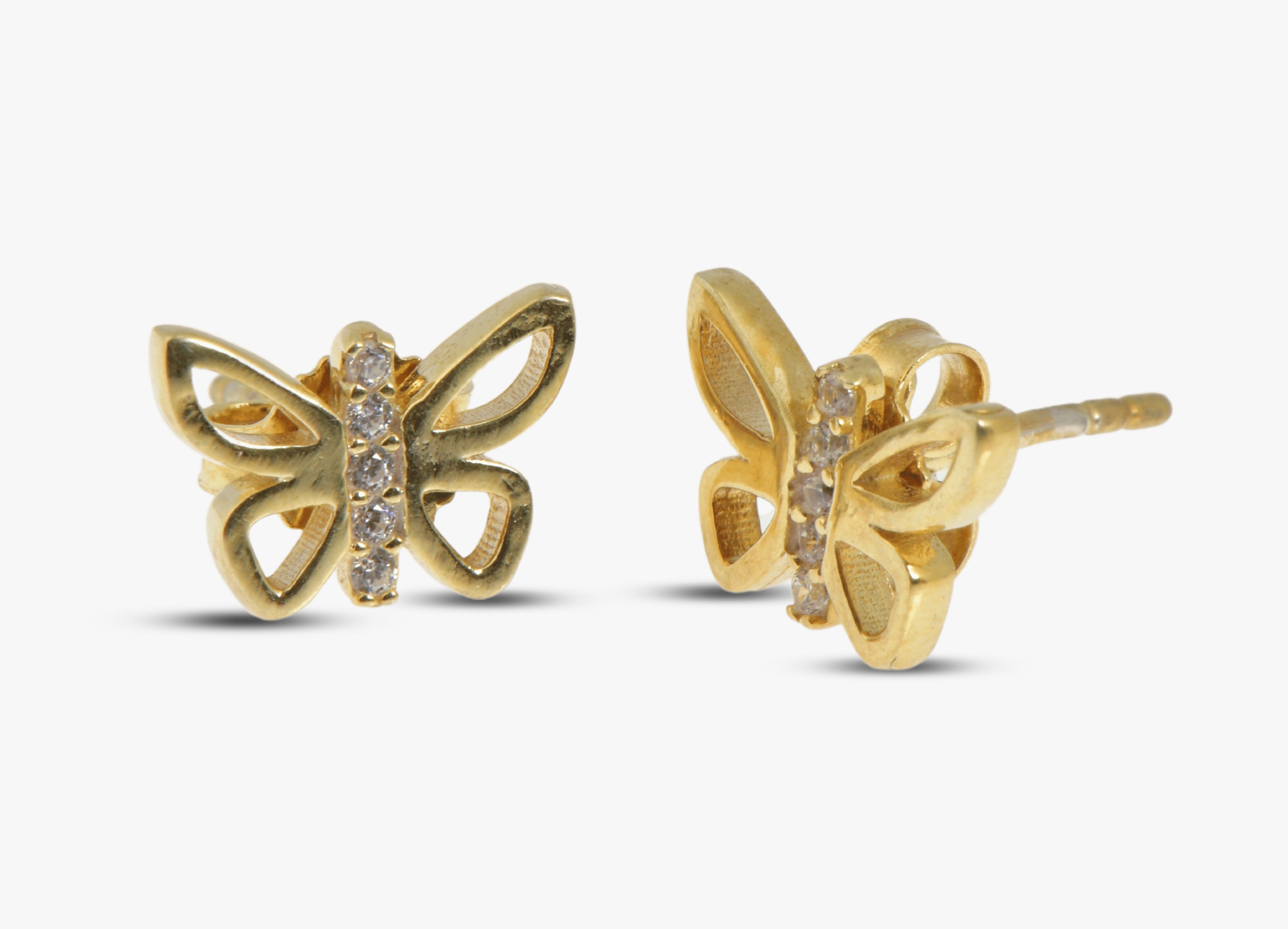 Minimalist Butterfly Earrings handcrafted by Augusta Antonina Fine Jewelry with love and care. These dainty Buttefly studs are available for everyday using and perfect match to your outfit. Made from 18K Gold Plated 925 Sterling Silver and 5 white cubic zirconia stones. This elegant stud earrings are great gift idea for yourself and your loved ones.