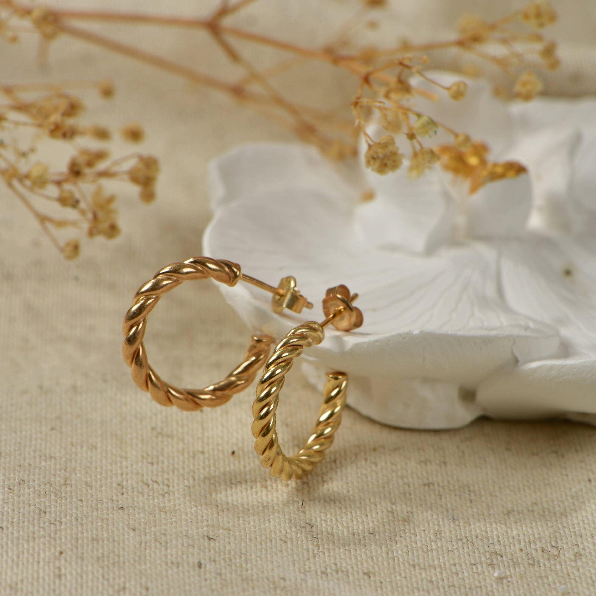 24K Gold Plated Spiral Twisted Huggie Hoop Earrings is what you're looking for!