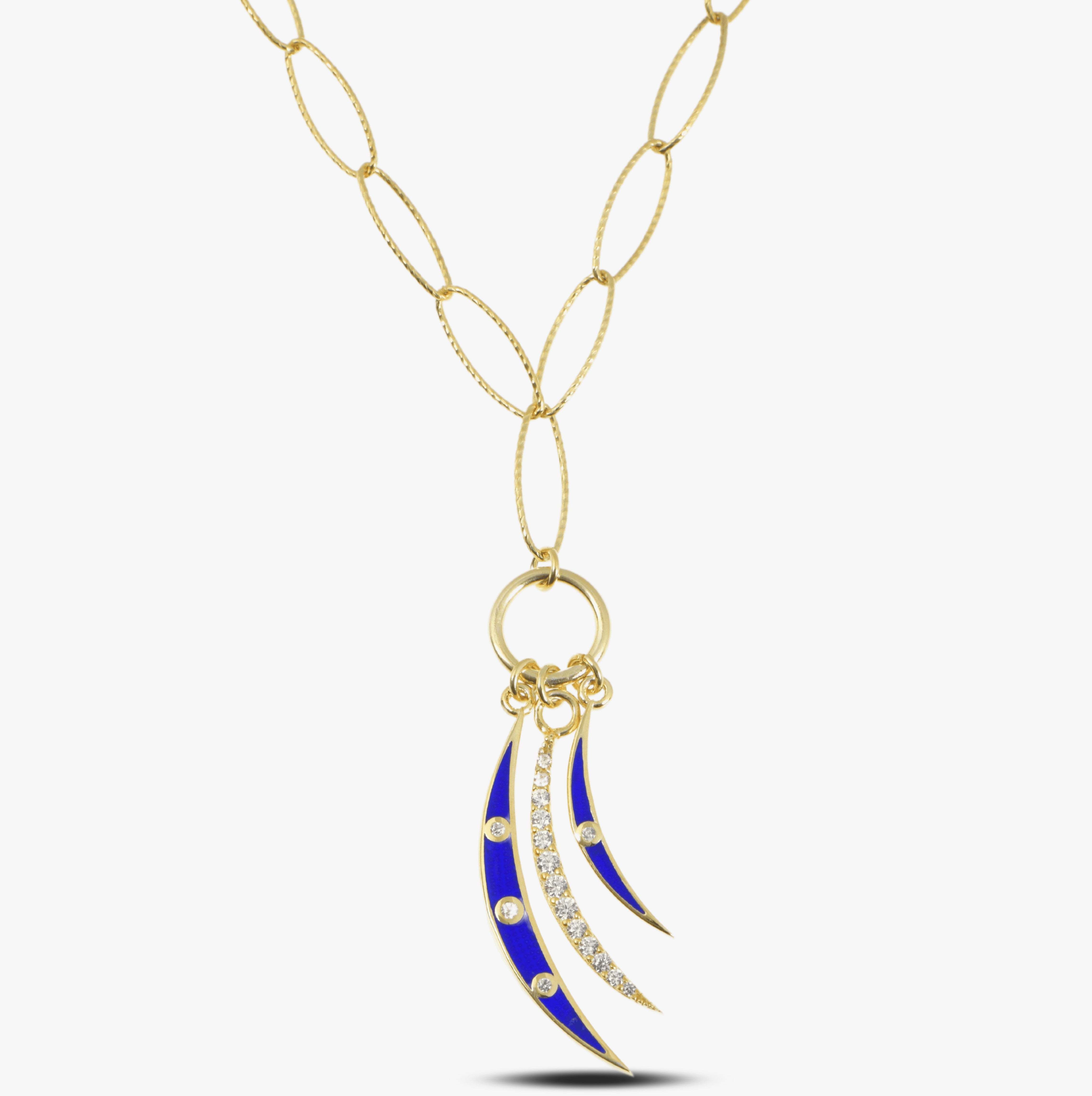 Adorable Dainty Crescent Moon Necklace is handcrafted by the finest artists with love and care. This stunning Three Crescent Moon Shape Necklace made from 18K Gold Plated 925 Solid Sterling Silver, Blue enameled and high quality white cubic zirconia stones. Blue crescent shapes, sparkling stones add elegance to you and will be perfect match to your outfit with the elegant chain.