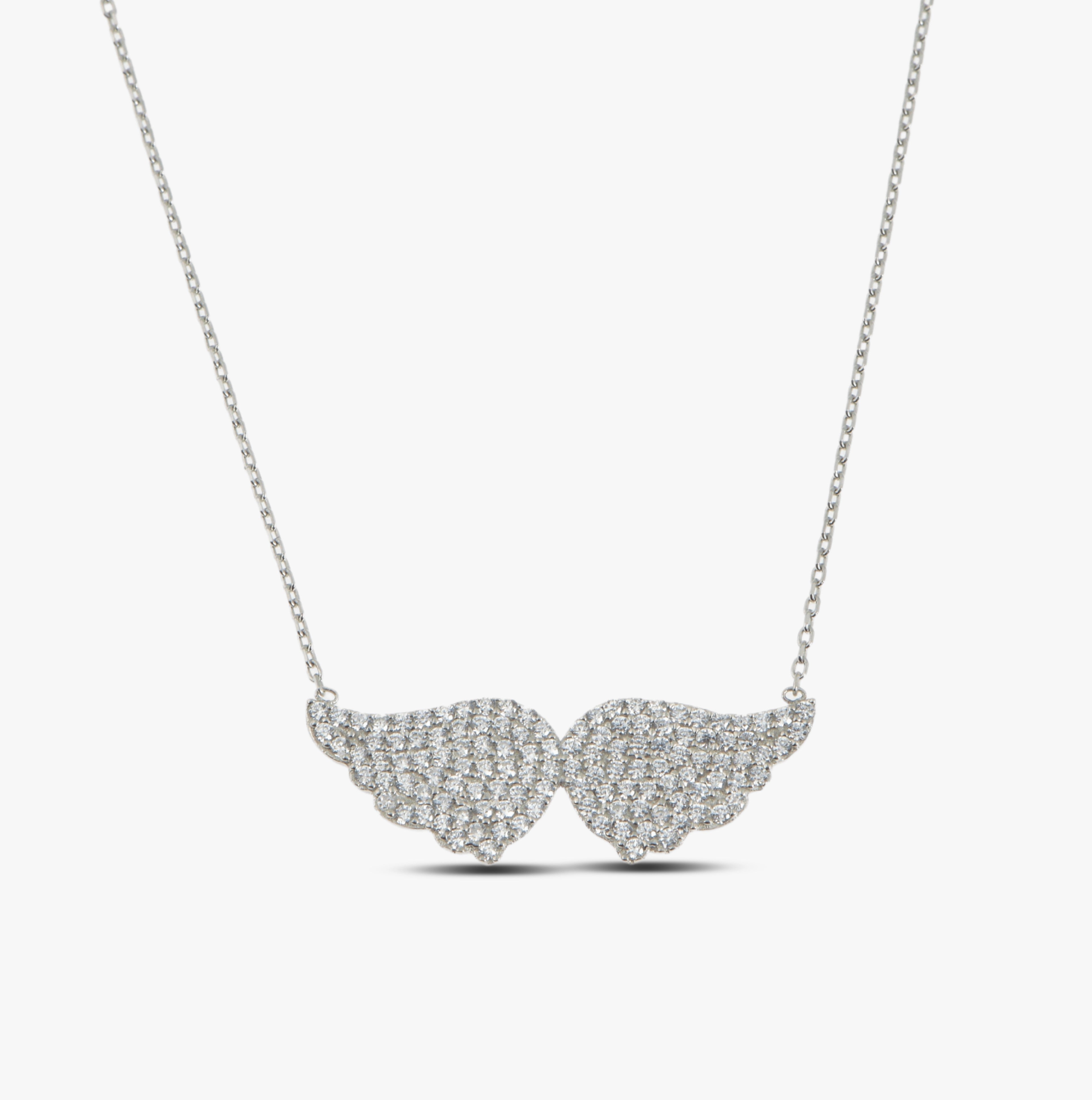This elegant Sterling Silver Angel Wings Necklace handcrafted with love and care by the finest artists. Pave Diamond look with white cubic zirconia stones all around will add more elegance on daily look. Dainty Angel Wings Necklace is designed for perfect gift to yourself and your loved ones.