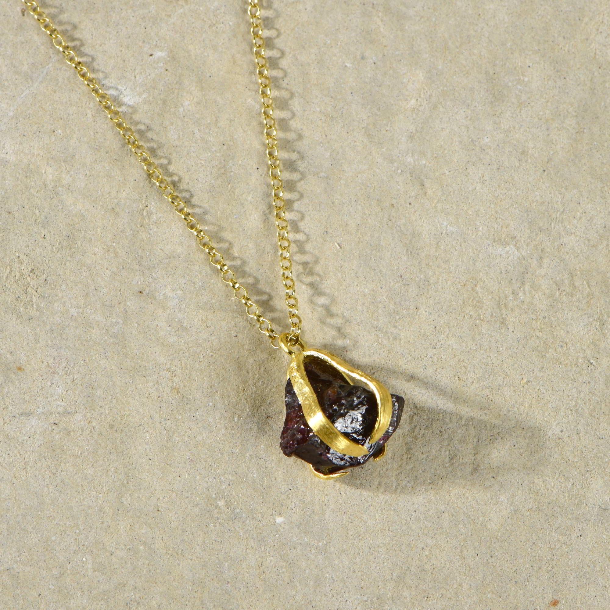 From Augusta Antonina’s newest collection, this Sterling Silver Garnet Gemstone January Birthstone Necklace is a celebration of individuality, natural beauty, and artisan craftsmanship. Handcrafted with a real, raw Garnet gemstone, each pendant is truly one of a kind — set in 24K gold-plated 925 solid sterling silver for a timeless, vintage-inspired finish.
