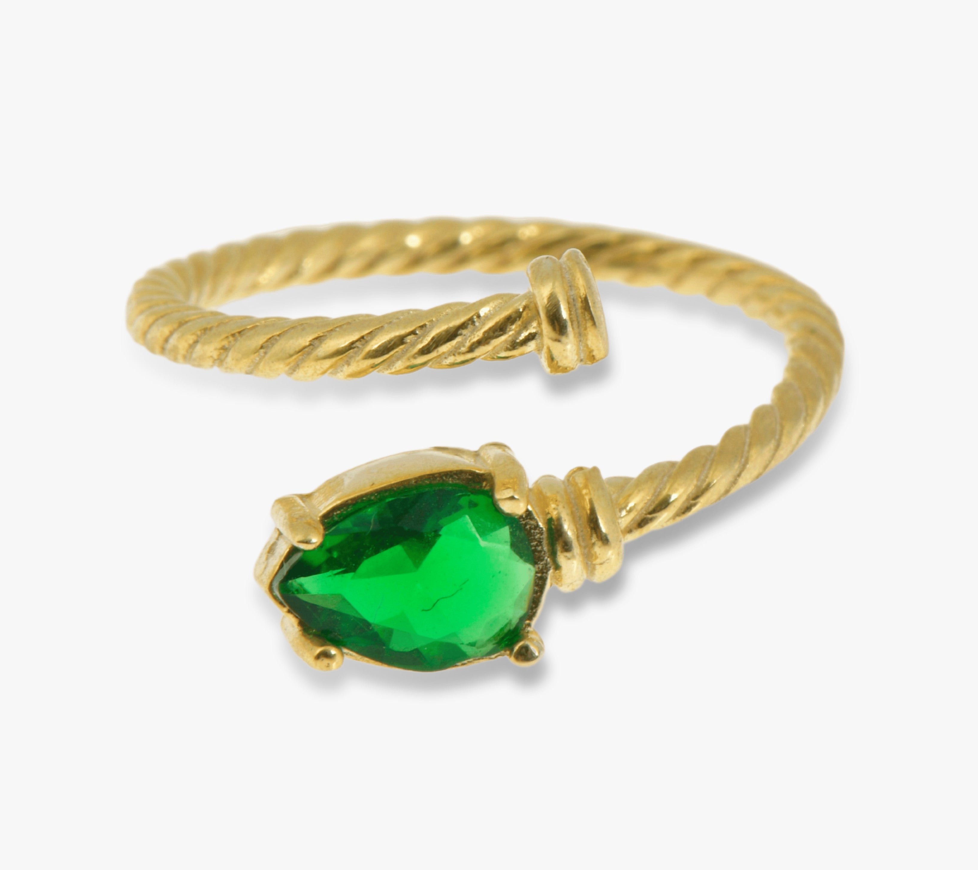 Silver Twisted Band designed Emerald CZ Ring is one of our unique designs and it is an adjustable, (5¼ to 8¼ US) Free Size Ring. Twisted Rope shaped silver band detail is adding daintiness on your finger. Our adjustable silver emerald ring handcrafted with love and care by the finest artists. Selected for you to reflecting your character on your daily life. Solitaire Emerald Twisted Ring is made from 18K Gold Plated High Quality 925 Solid Sterling Silver and High Quality Emerald Cubic Zirconia Stones. Dainty Minimalist Free size ring is a perfect gift idea for you and your loved ones without thinking a finger size!