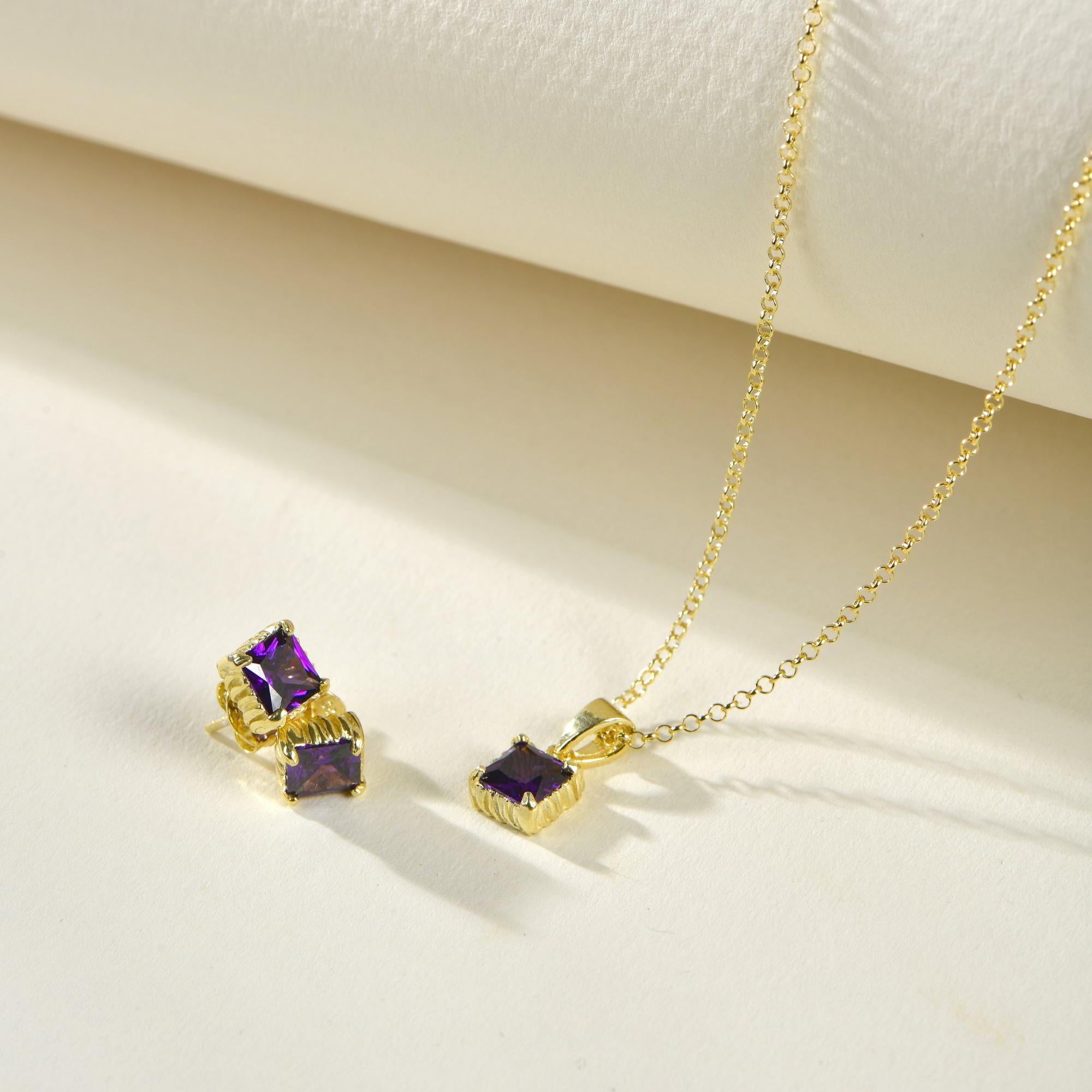 • Gemstone: Princess-cut Amethyst cubic zirconia stone