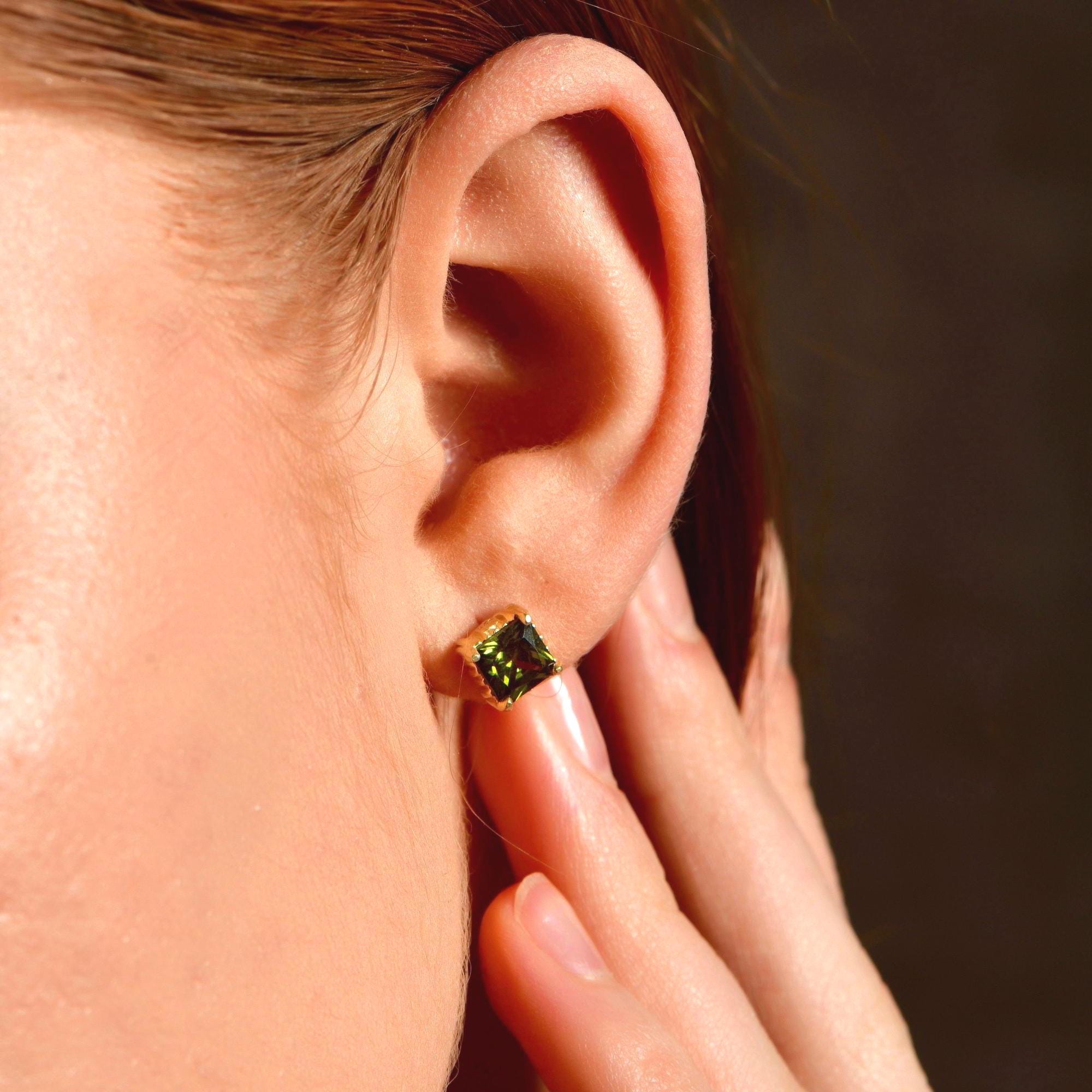 Minimalist Silver Peridot Stud Earrings, Gold Plated August Birthstone Studs, Princess Cut Peridot Gemstone Earrings, Unique Jewelry For Her