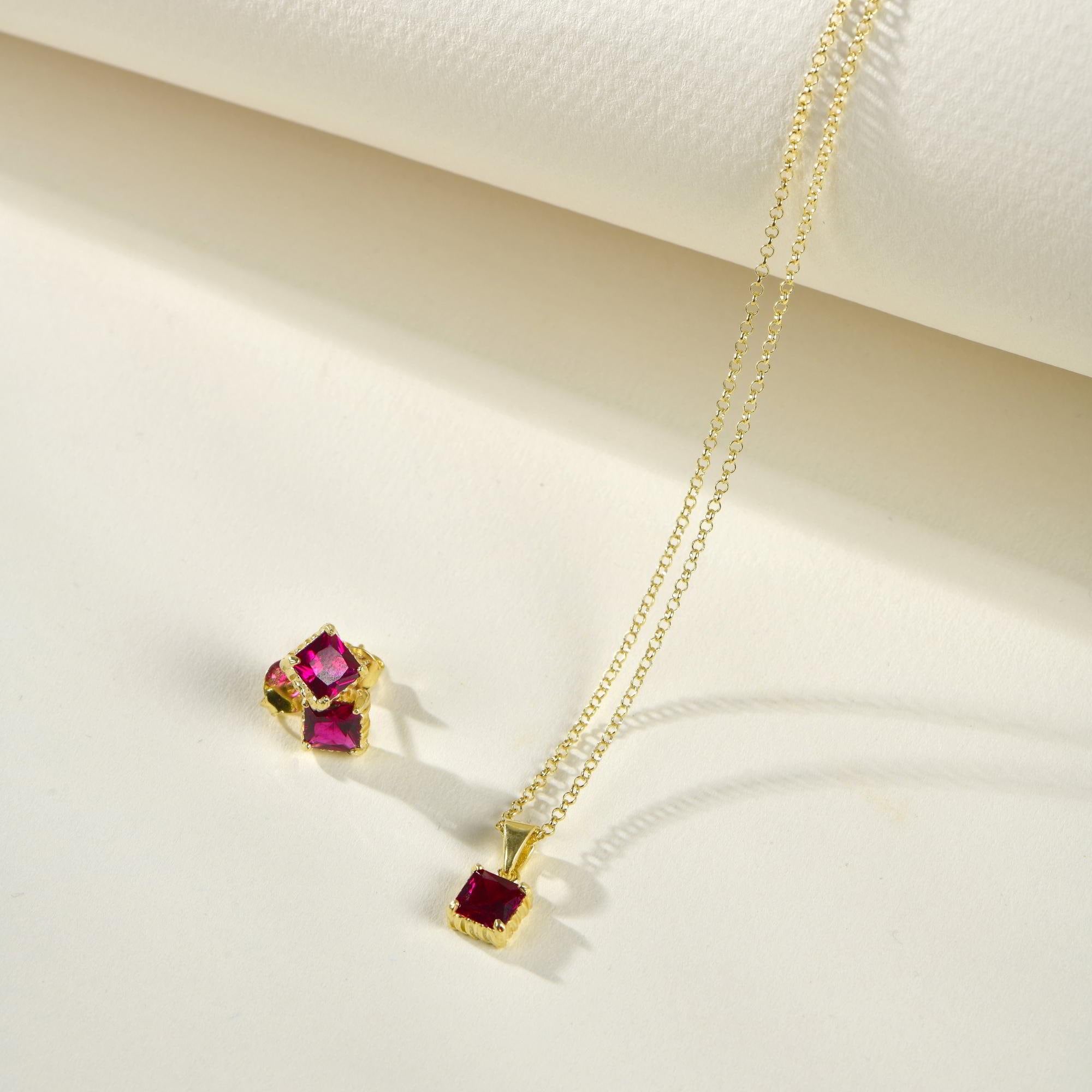 From Augusta Antonina’s newest collection, these Minimalist Silver Ruby Stud Earrings are a refined celebration of timeless elegance and meaningful design. Handcrafted with 24K gold-plated 925 solid sterling silver, each pair features princess-cut Ruby cubic zirconia gemstones, set in sculpted square bezels that blend vintage-inspired charm with clean, geometric lines.