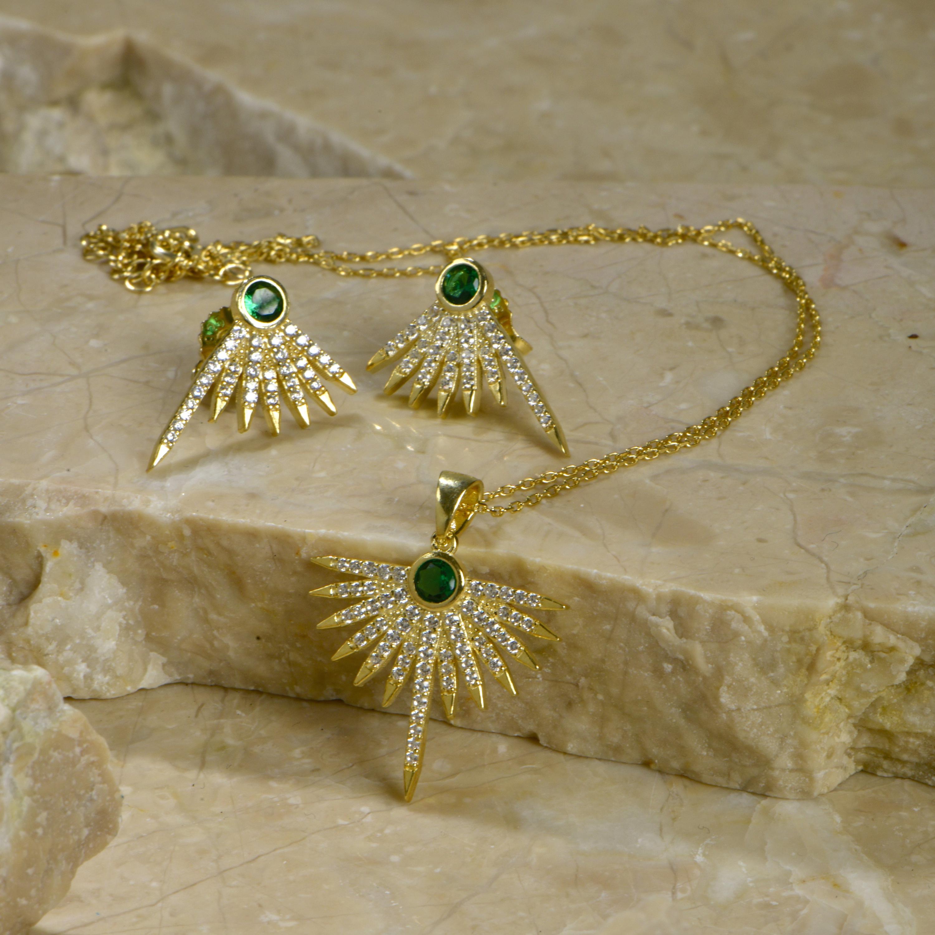 Complete the look with the matching Dragonfly Necklace, available now in our shop — crafted in the same precious materials and emerald birthstone detail.