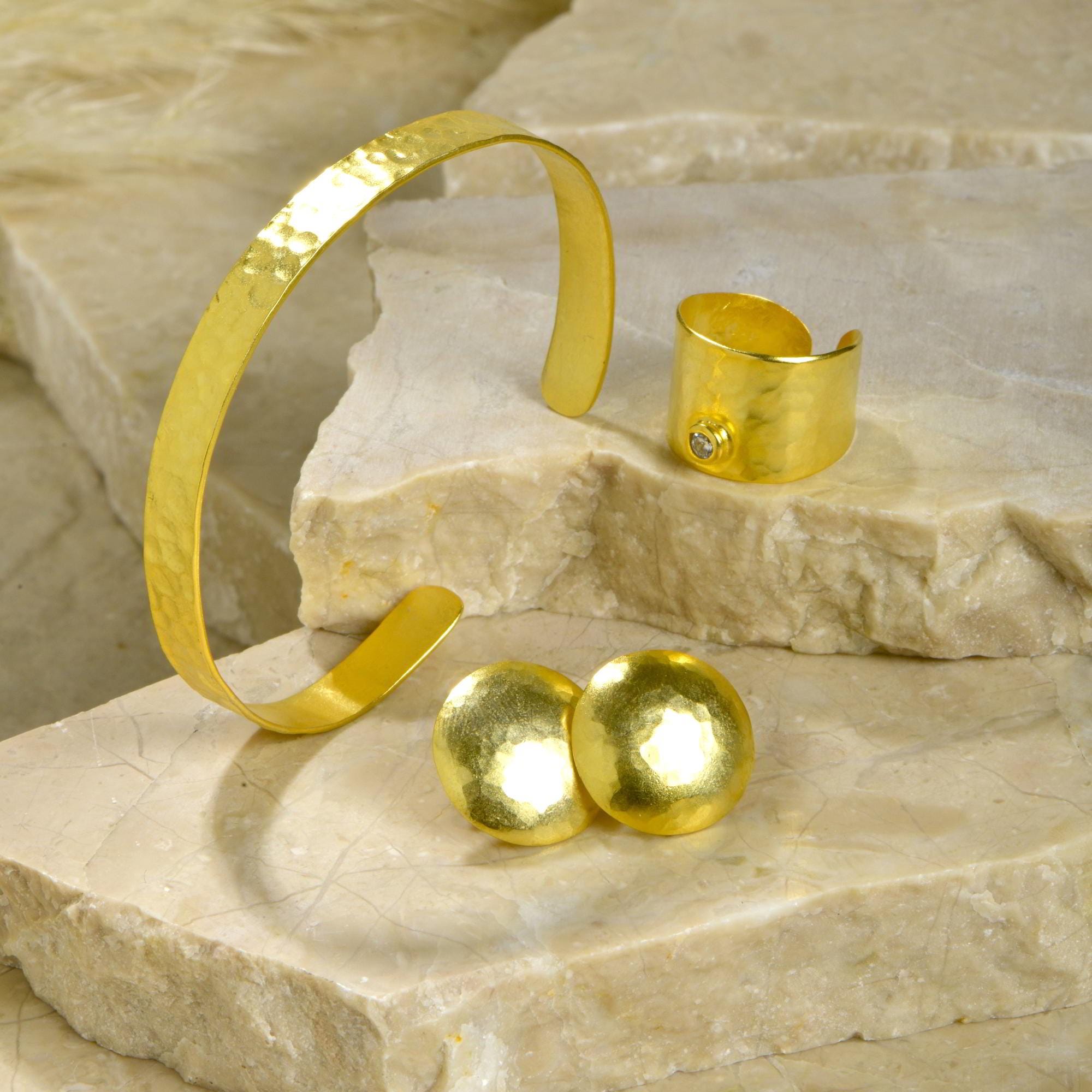 This piece of vintage jewelry for her is perfect as a graceful everyday accessory or a thoughtful gift. For a complete and harmonious look, pair them with the matching hammered cuff bracelet and hammered cuff ring from the same collection to create an elegant, coordinated jewelry set.