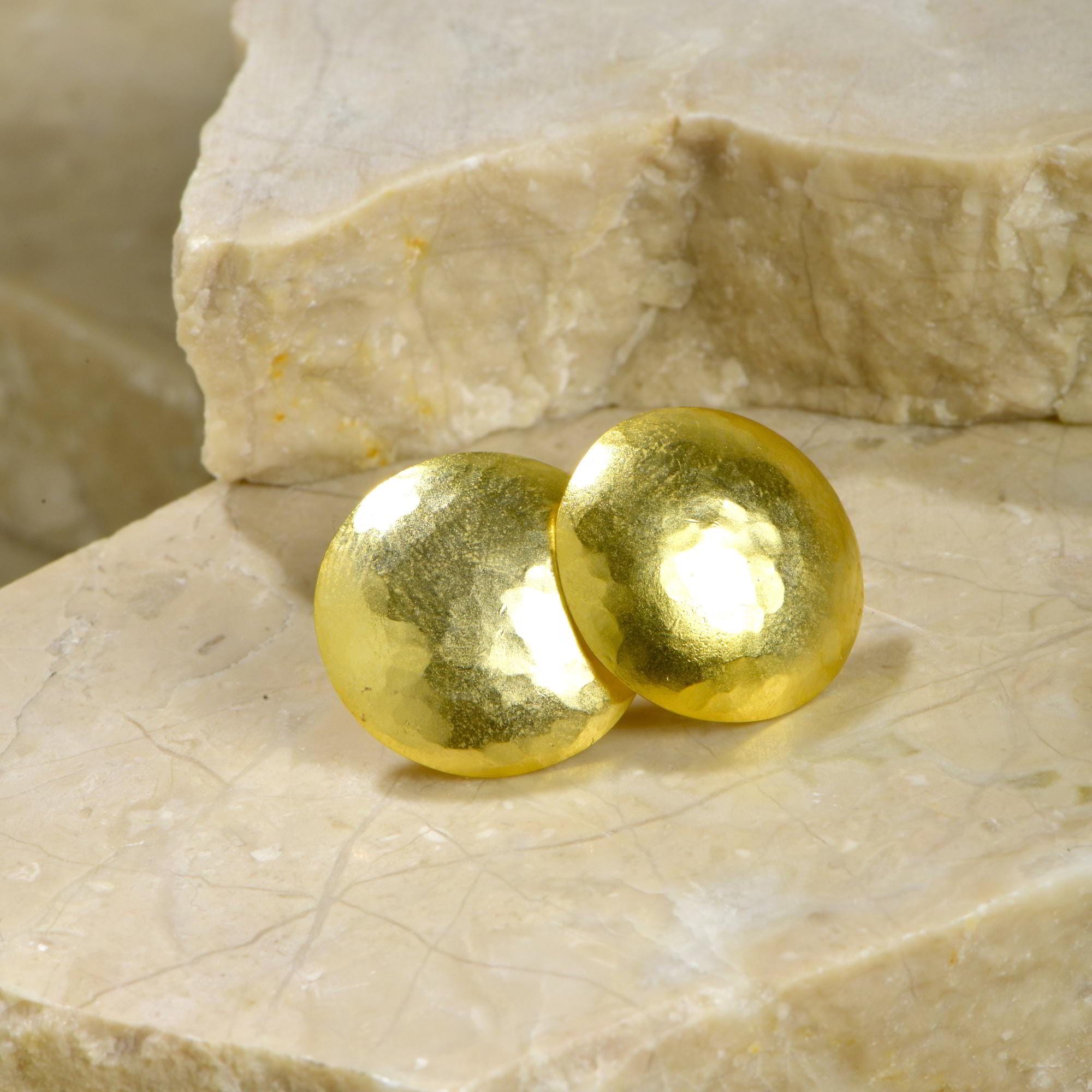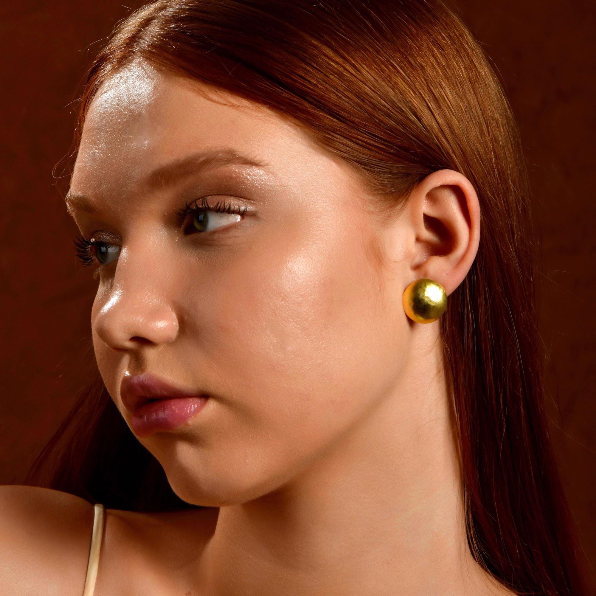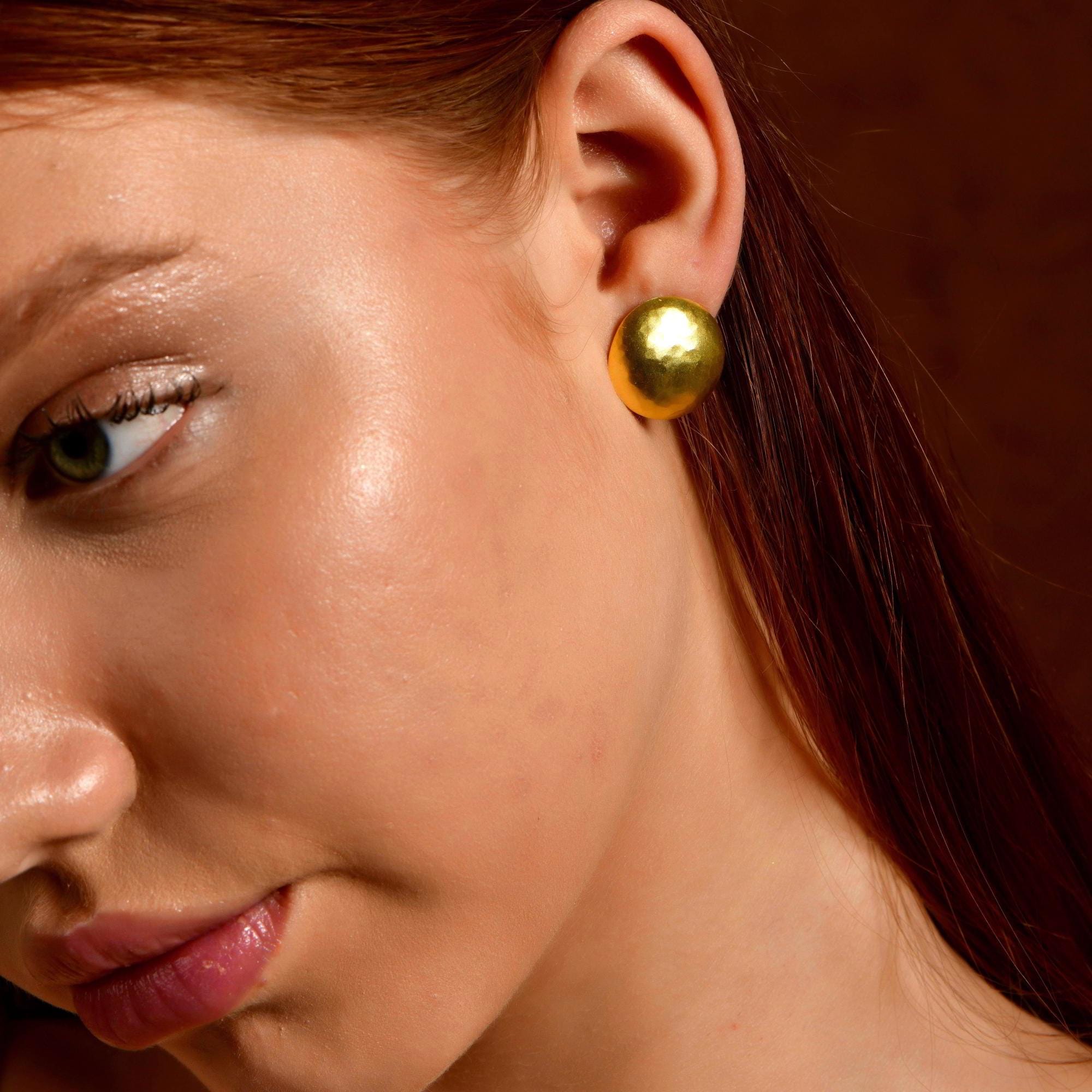 Made from 925 solid sterling silver and finished with a radiant 24K gold plating, these antique inspired round stud earrings showcase exceptional craftsmanship and a subtle vintage allure that transitions effortlessly from day to night.