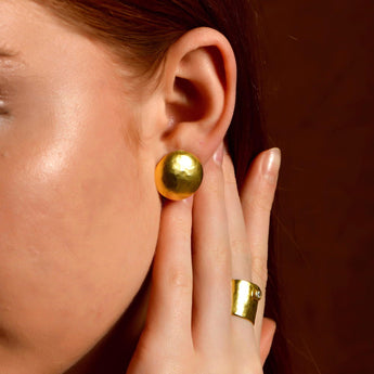 The Silver Hammered Dome Earrings are one of the signature designs from Augusta Antonina Fine Jewelry’s exclusive Artisan Collection. Entirely handcrafted, each pair is individually hand-hammered to create a beautifully textured surface and a softly domed disc shape, reflecting the timeless elegance of antique jewelry.