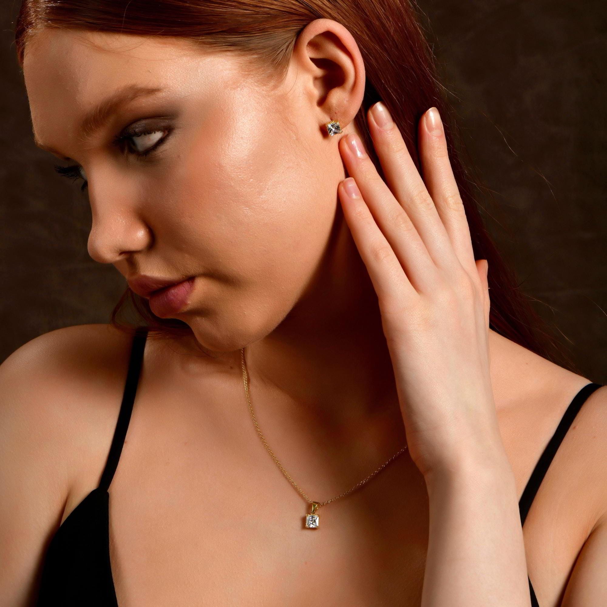 Silver Princess Cut Diamond Stud Earrings, Gold Plated April Birthstone Studs, Minimalist CZ Diamond Gemstone Eearrings, Jewelry For Women