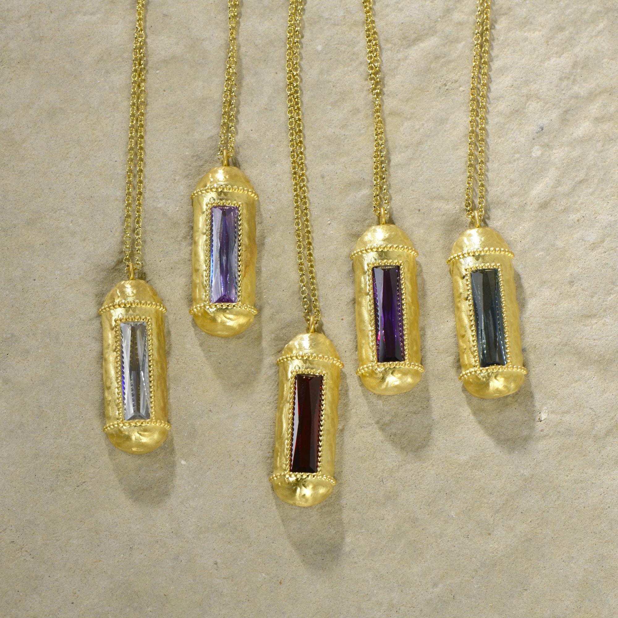 Silver Spiritual Diamond Necklace in 24K Gold, Celestial Birthstone Pendant, Ancient Inspired Symbolism Necklace, Unique Meaningful Jewelry