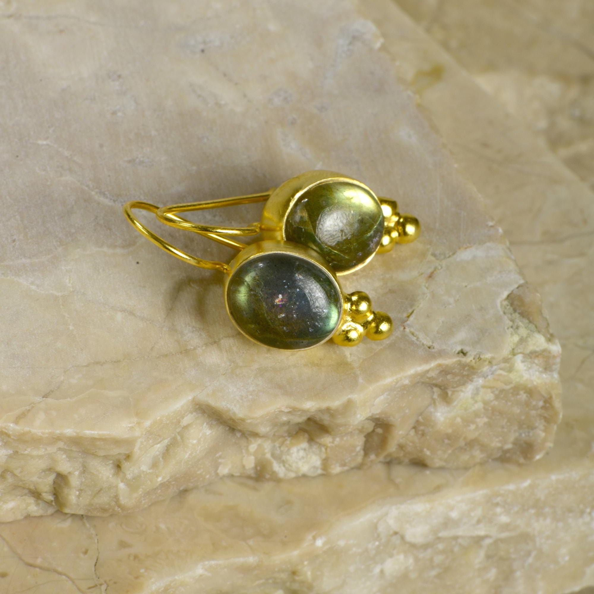 For a coordinated ensemble, pair these earrings with the matching Labradorite Necklace and Ring from the same collection to create a refined gemstone jewelry set.