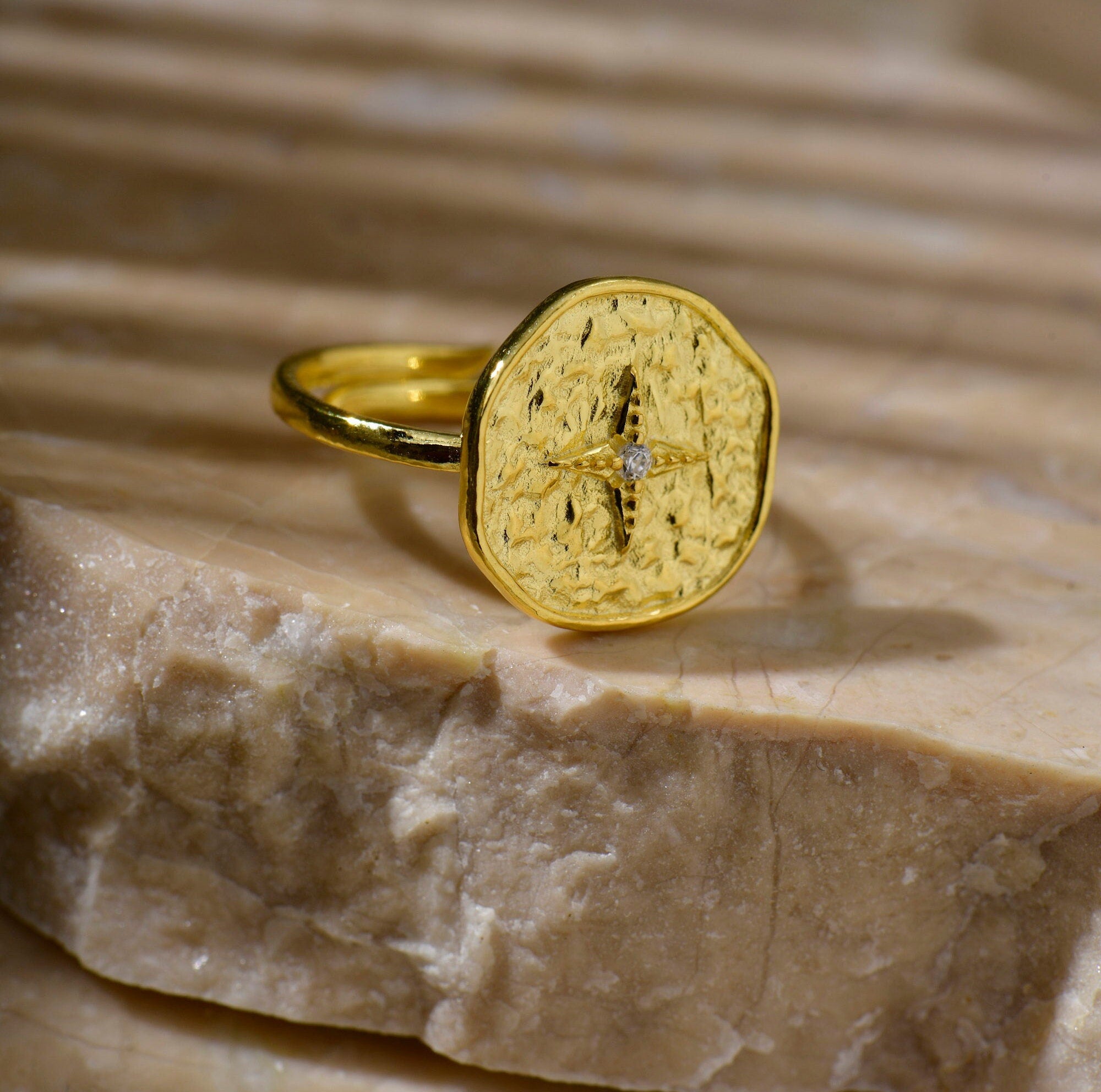 Antique Silver Diamond Star Disc Ring will be perfect match for your outfit.