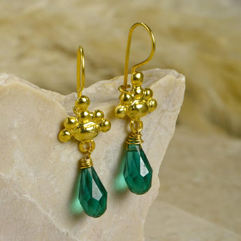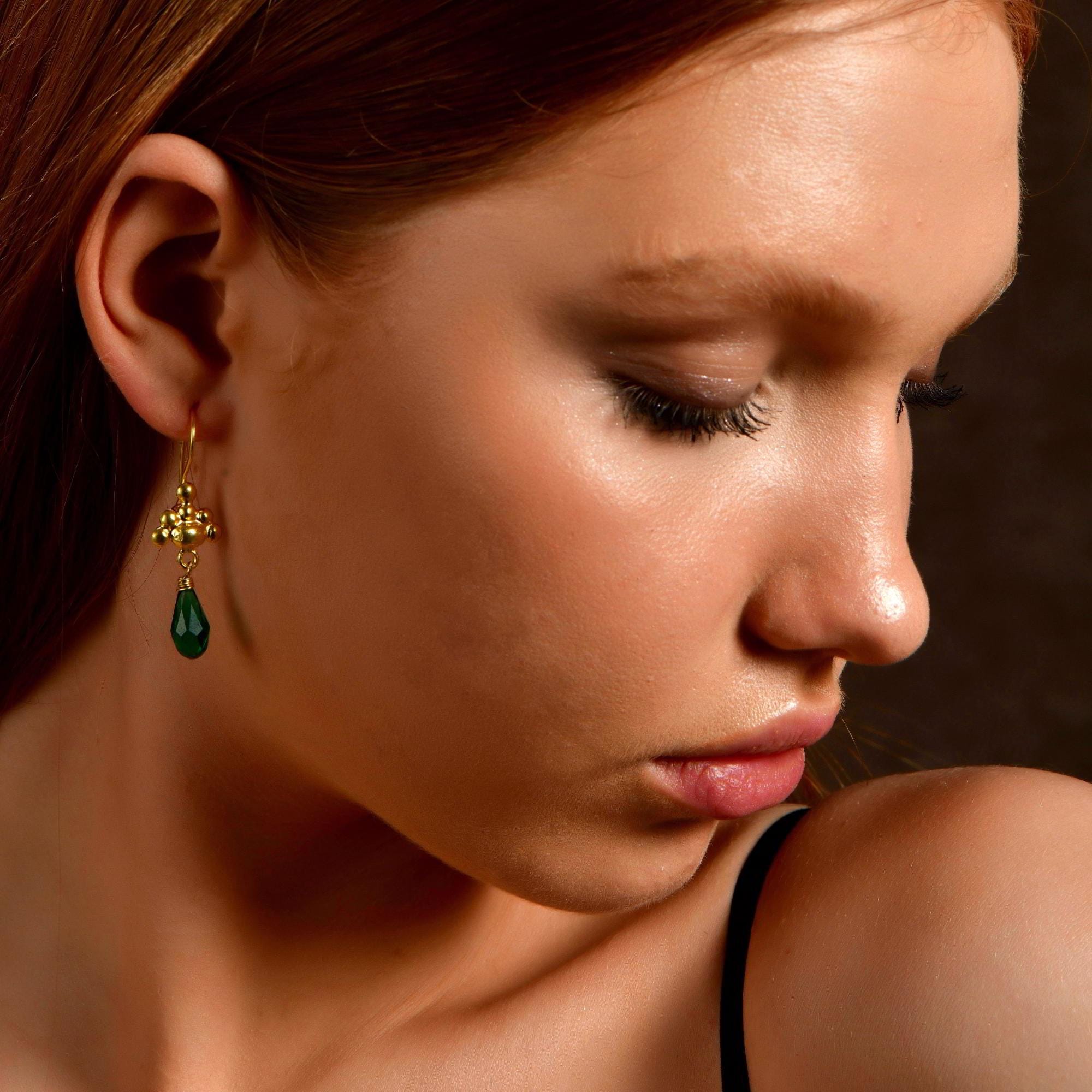 Natural Emerald Drop Earrings in 24K Gold, Genuine May Birthstone Dangle Earrings, Vintage Dangling Gemstone Earrings, Jewelry Gift For Her