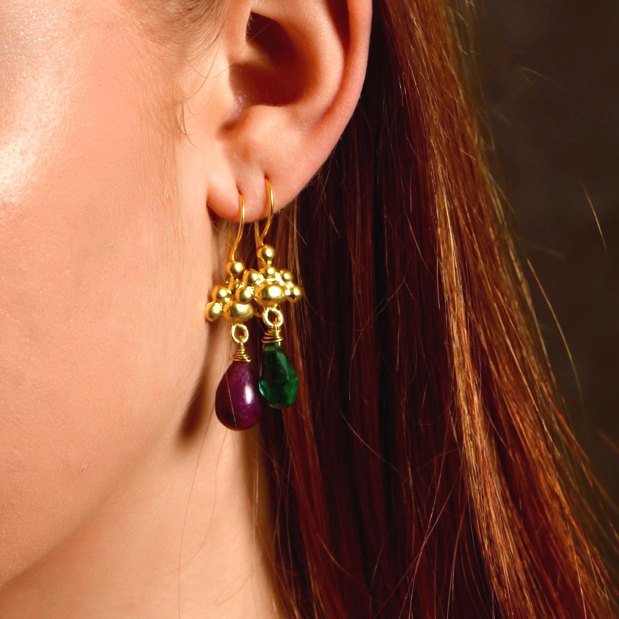 Each stone is expertly set on fine silver wire and mounted in 925 solid sterling silver with a radiant 24K gold plating, showcasing meticulous craftsmanship and timeless elegance. Lightweight yet striking, these artisan earrings add a refined touch of color and history to any look, making them an unmistakably one of a kind piece of handmade jewelry.