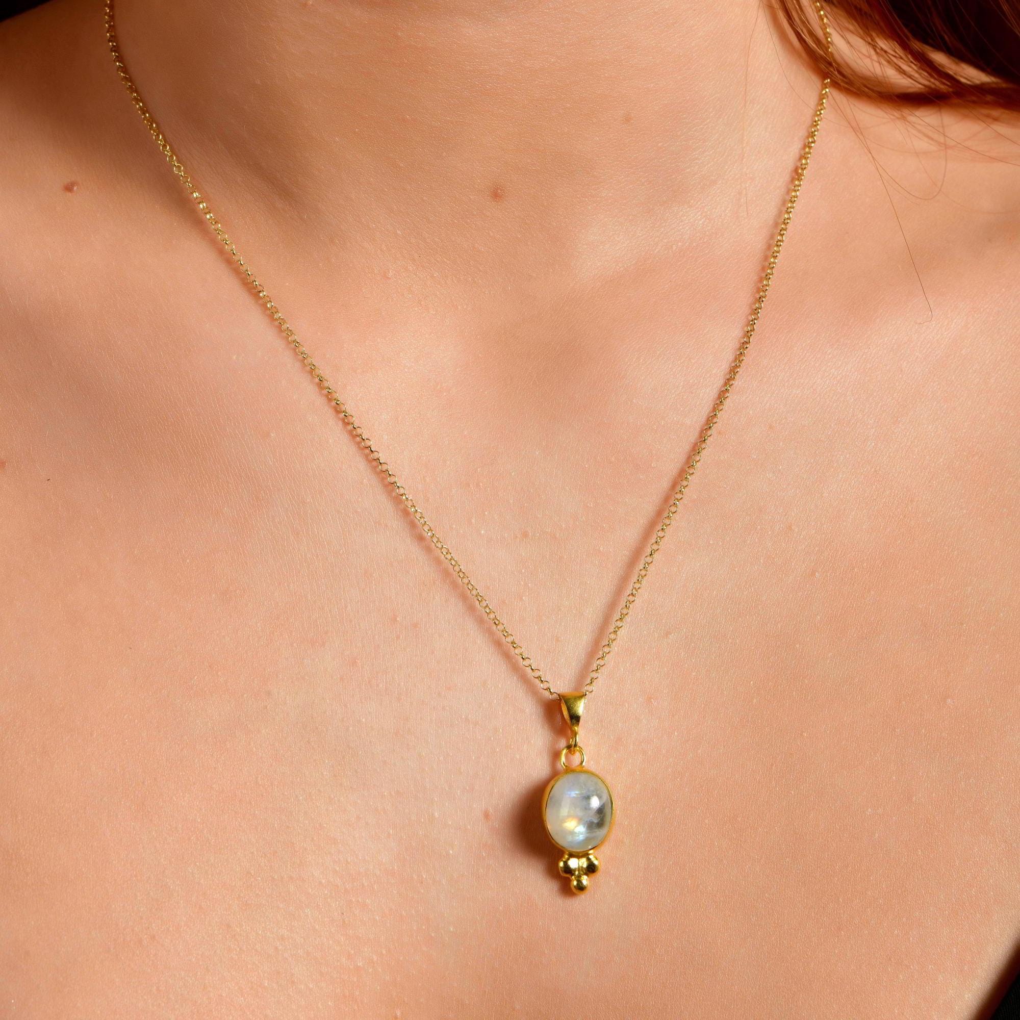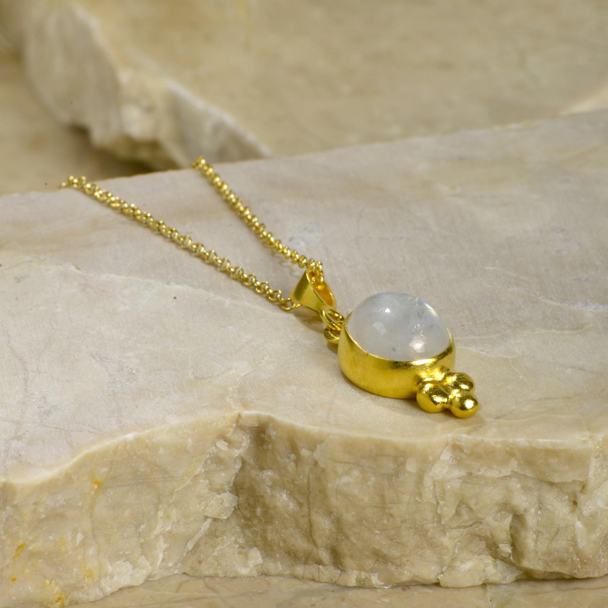 Natural Moonstone Necklace in 24K Gold, Silver Teardrop Moon Stone Pendant, Vintage Genuine Gemstone Necklace, Handmade Jewelry For Women