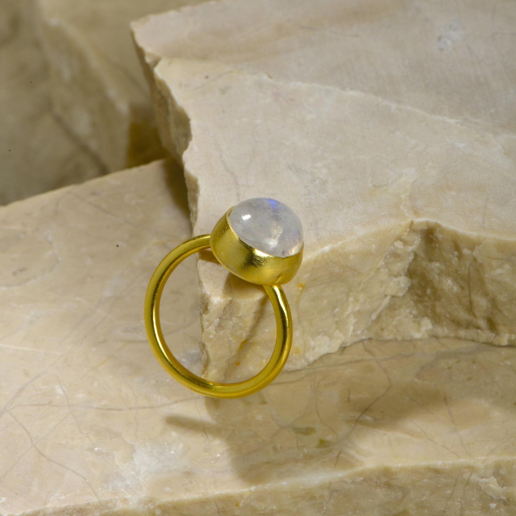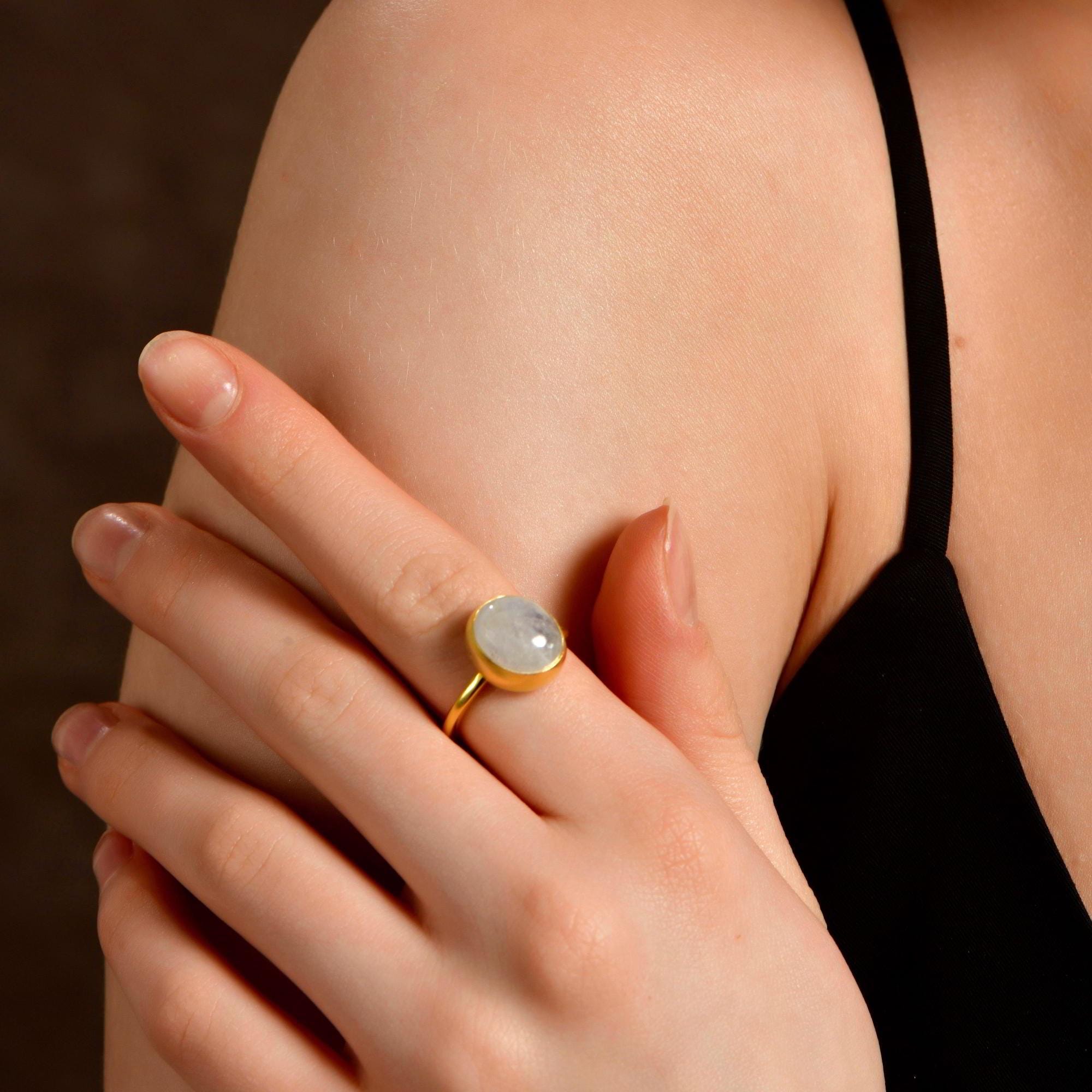 Natural Moonstone Ring in 24K Gold, Silver Oval Moon Stone Ring, Adjustable Real June Birthstone Ring, Handmade Vintage Jewelry Gift For Her
