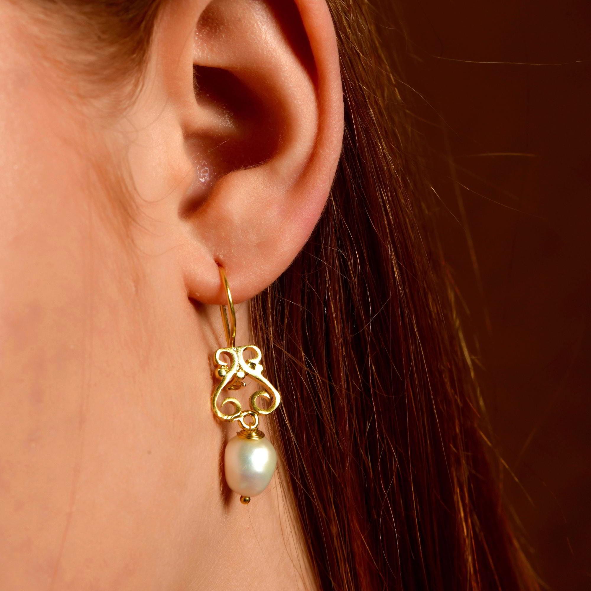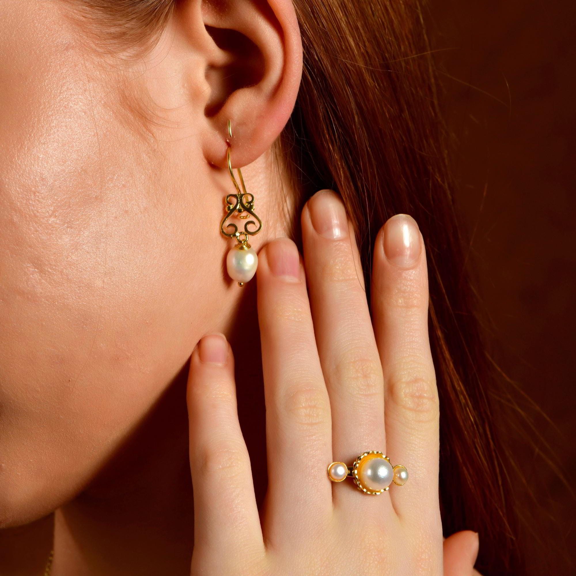 Natural Pearl Drop Earrings in 24K Gold, Silver Pearl Dangle Earrings, Vintage Dangling Pearl Chandelier Earrings, Bridal Jewelry For Women