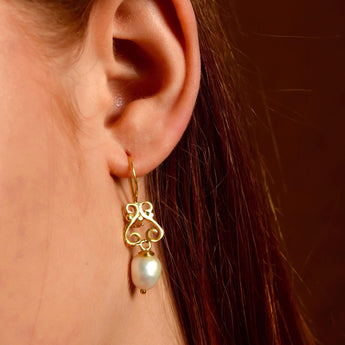 Crafted from 925 solid sterling silver and finished with radiant 24K gold plating, these earrings showcase meticulous craftsmanship and the organic beauty of pearls. Lightweight yet striking, they are perfect for both everyday sophistication and special occasions such as bridal events—an unmistakably one of a kind piece of handmade jewelry.