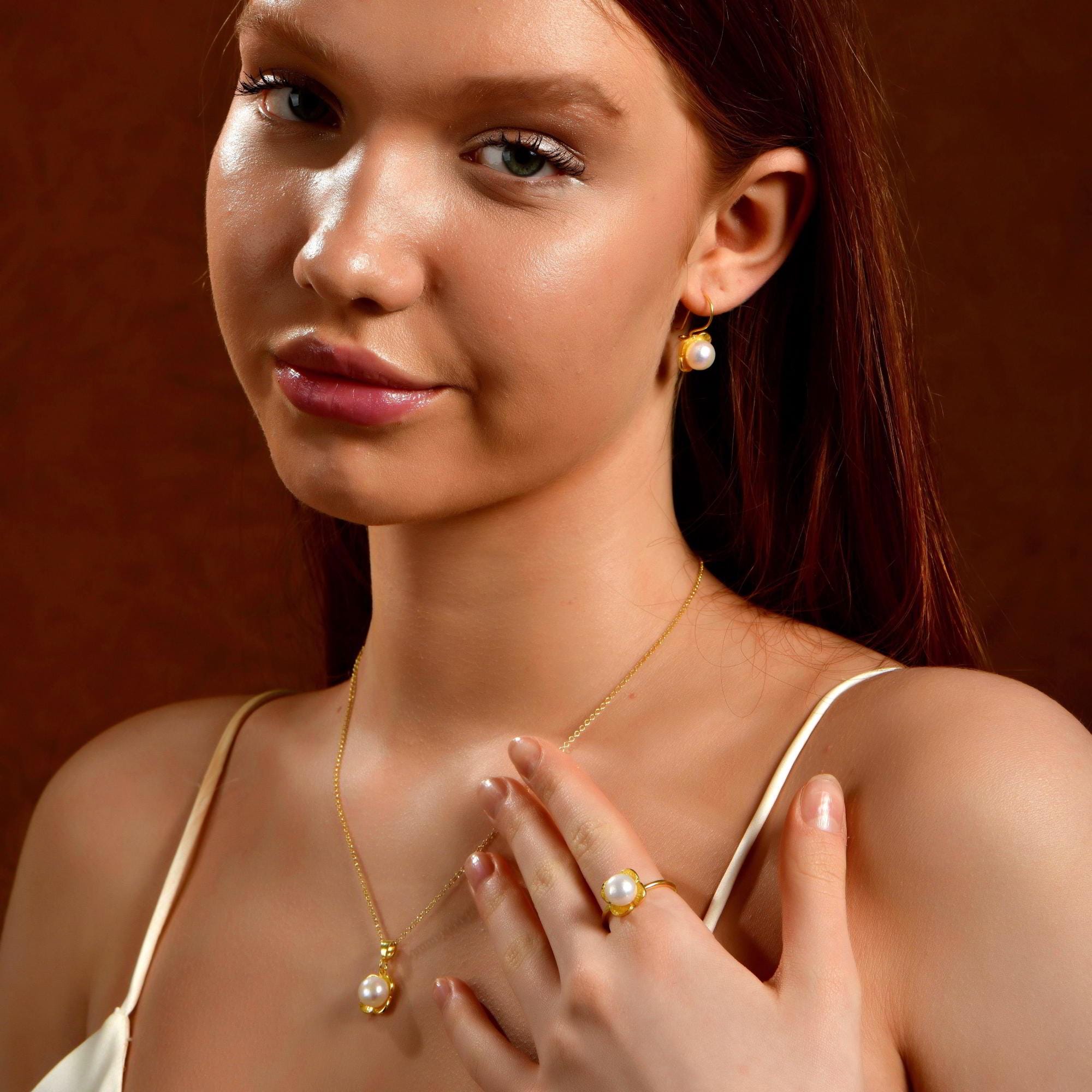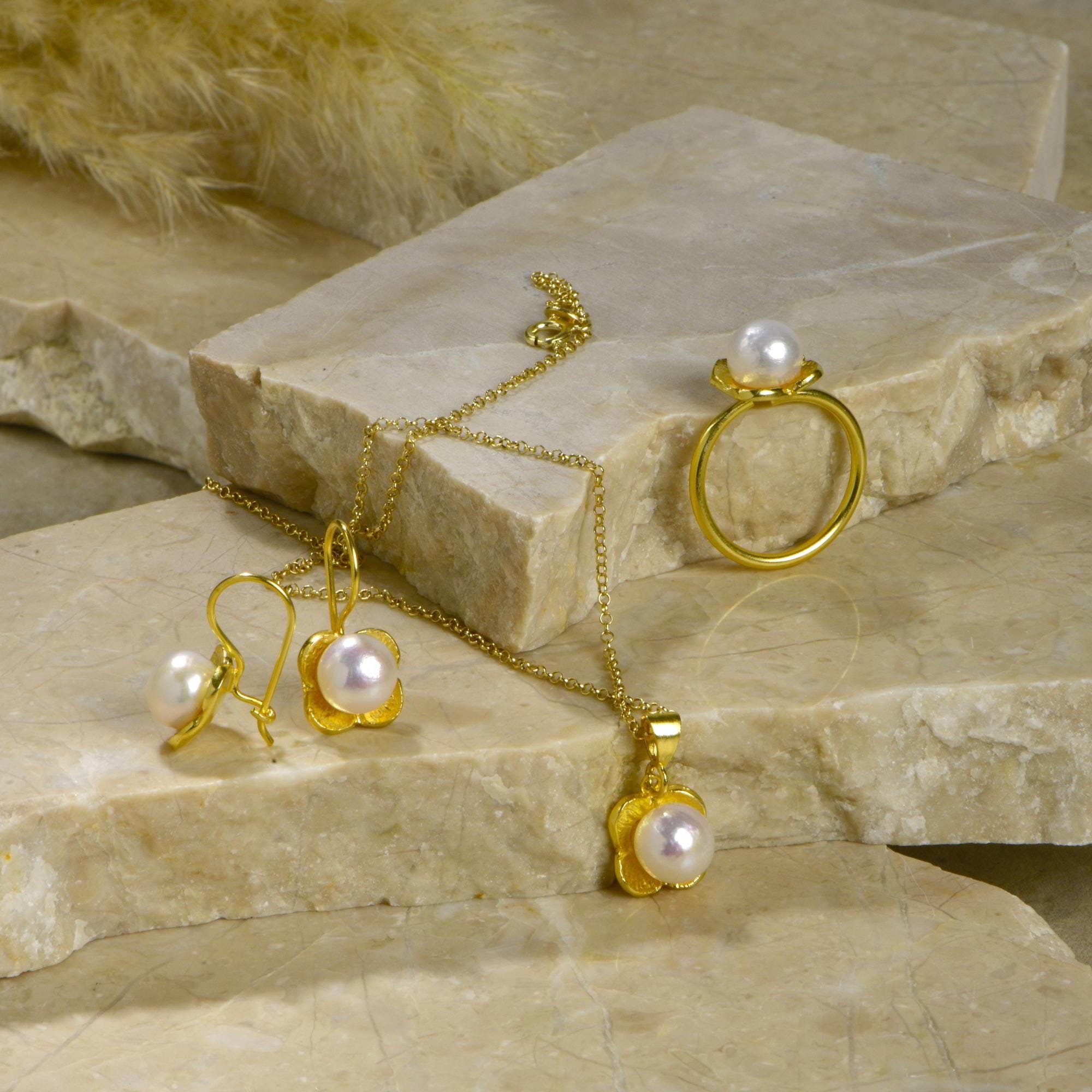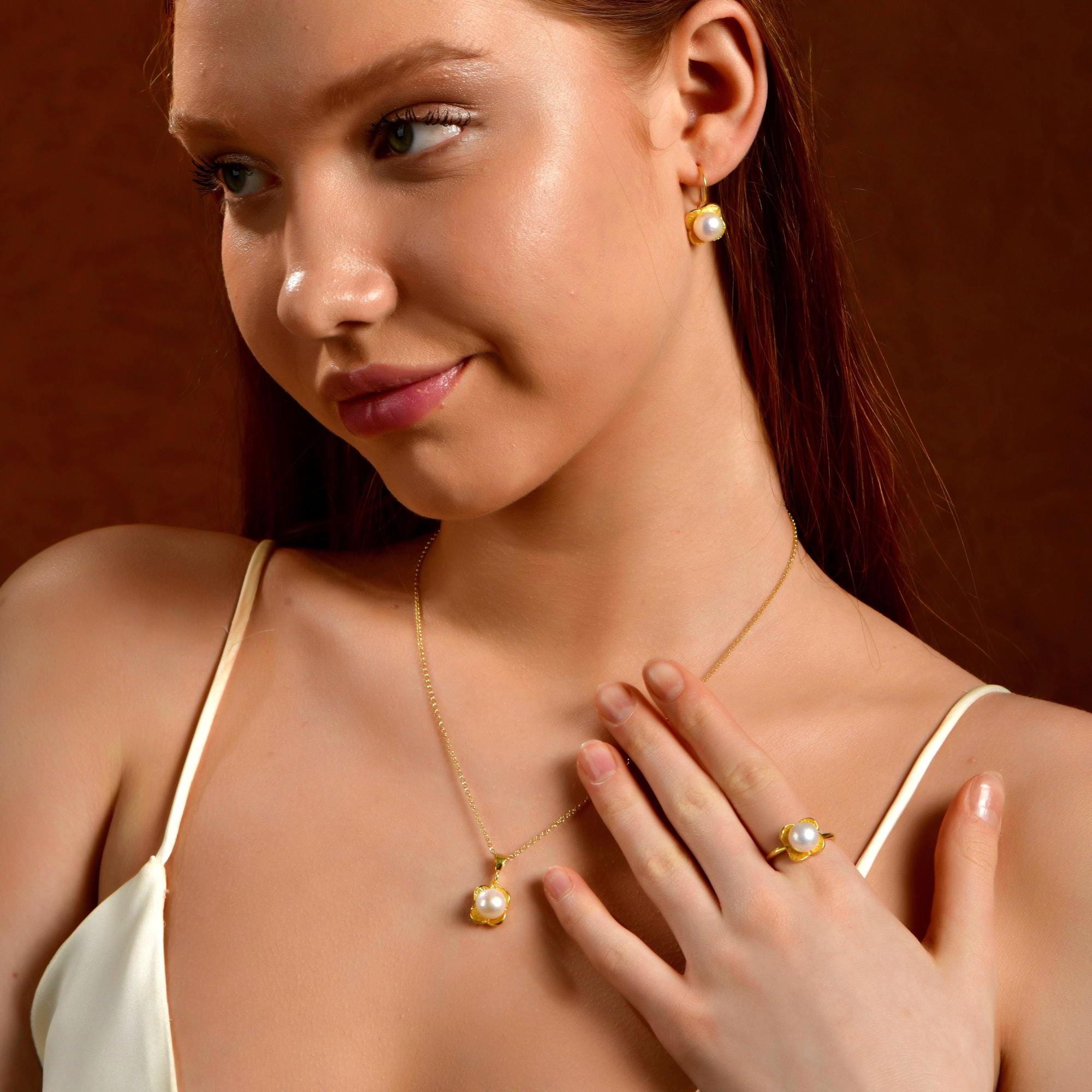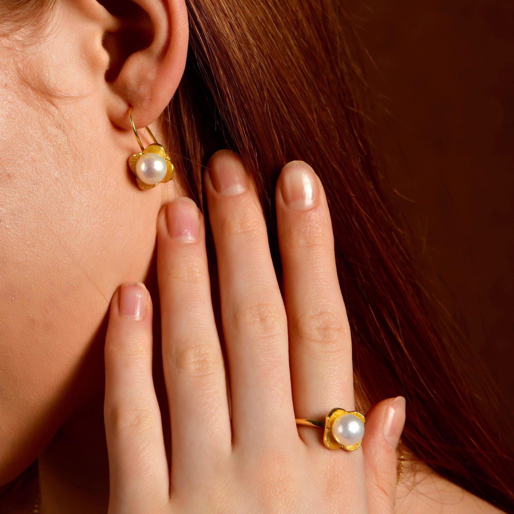 These vintage pearl earrings are a versatile treasure for everyday elegance or special occasions. For a perfectly coordinated look, pair them with the matching Silver Pearl Flower Ring from the same collection to create an elegant floral pearl jewelry set.