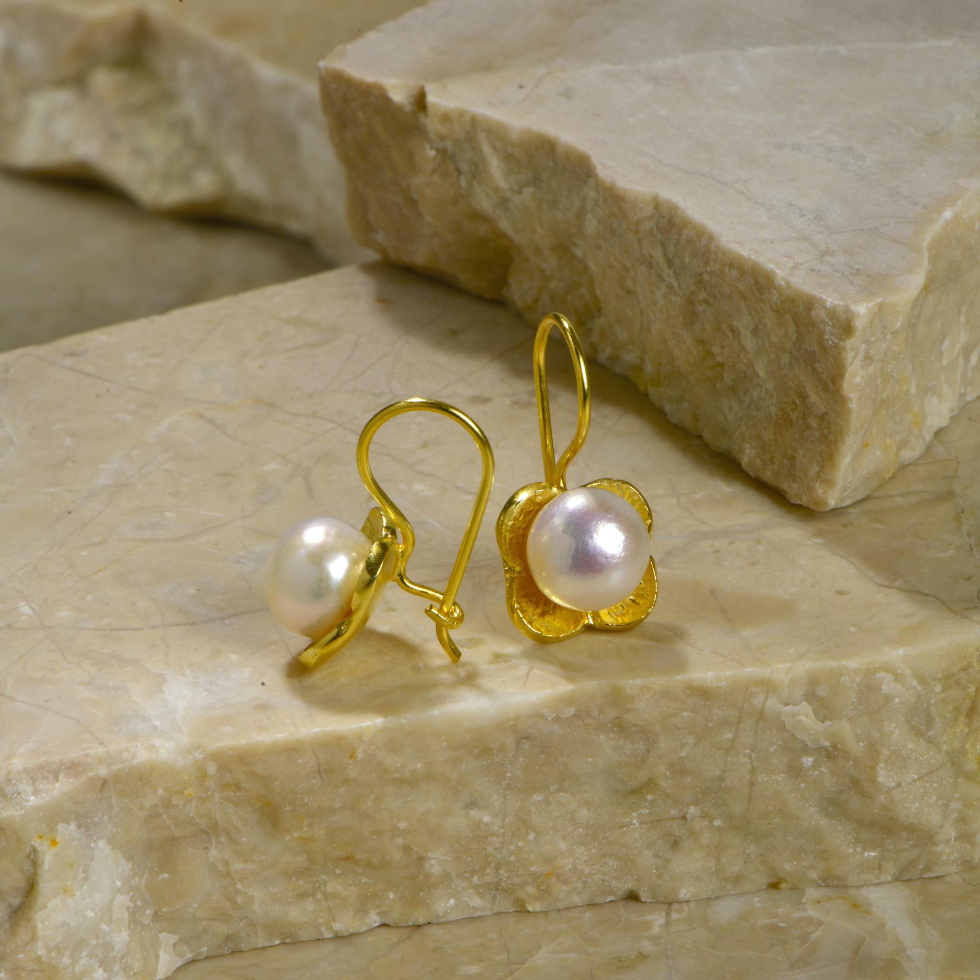 Natural Pearl Drop Flower Earrings in 24K Gold, Silver Pearl Dangle Earrings, Vintage Pearl Earrings, Bridal Wedding Earrings, Gift For Her