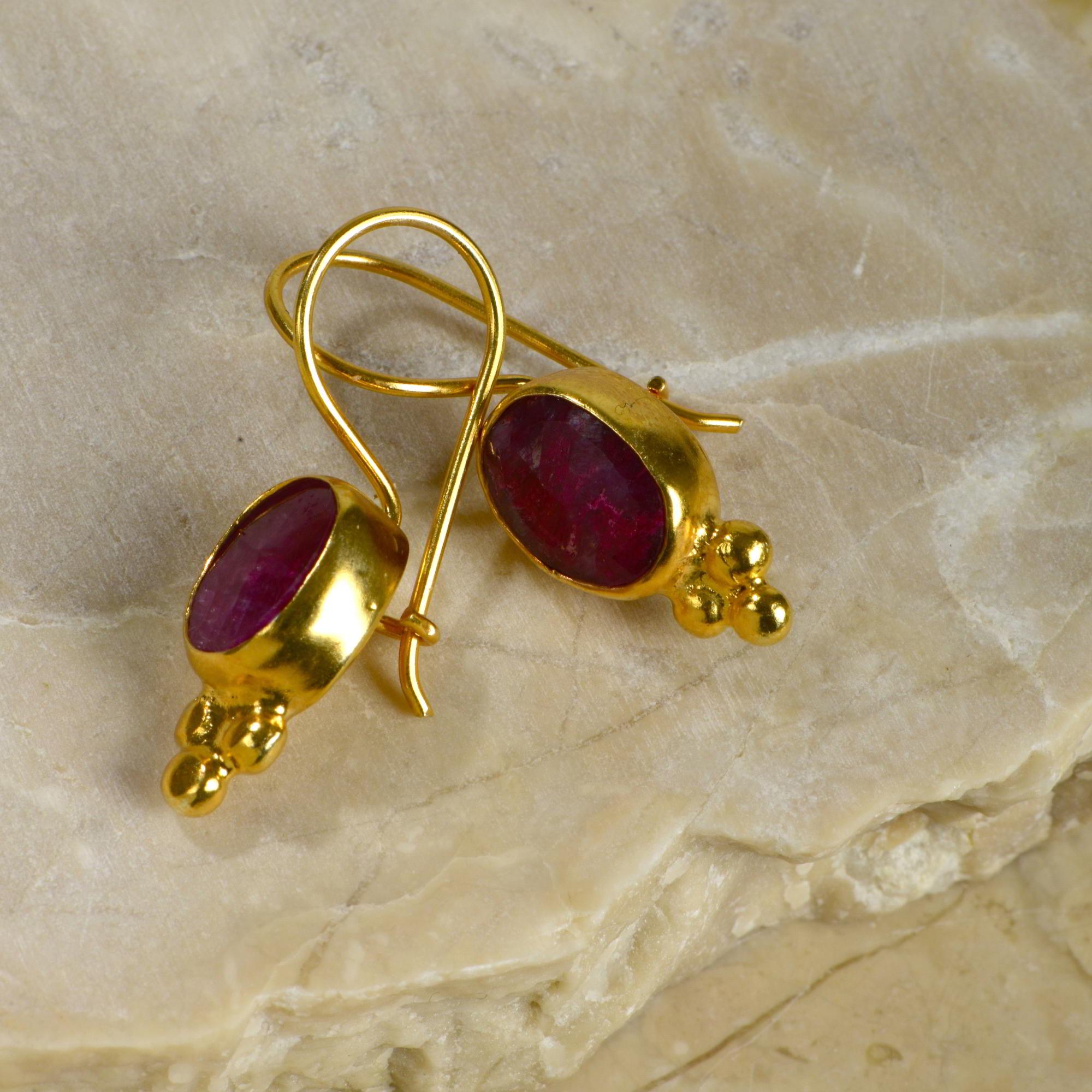Natural Ruby Drop Earrings in 24K Gold, Silver Teardrop Ruby Dangle Earrings, Vintage Oval July Birthstone Earrings, Jewelry Gift For Women