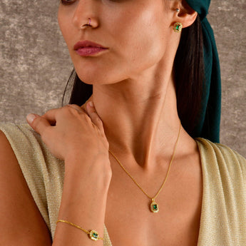 Silver Baguette Emerald Jewelry Set is handcrafted with love and care by the finest artists. Our dainty May Birthstone Necklace and Bracelet is made from 18K Gold Plated 925 Sterling Silver, Emerald CZ Diamond stone and the high quality white cubic zirconia stones. Rectangle Emerald Gemstone Jewelry Gift Set will be perfect match for your outfit and great gift idea for the classy events. Designed for you to reflect your personality and character. Let Your Inner Beauty Shine!