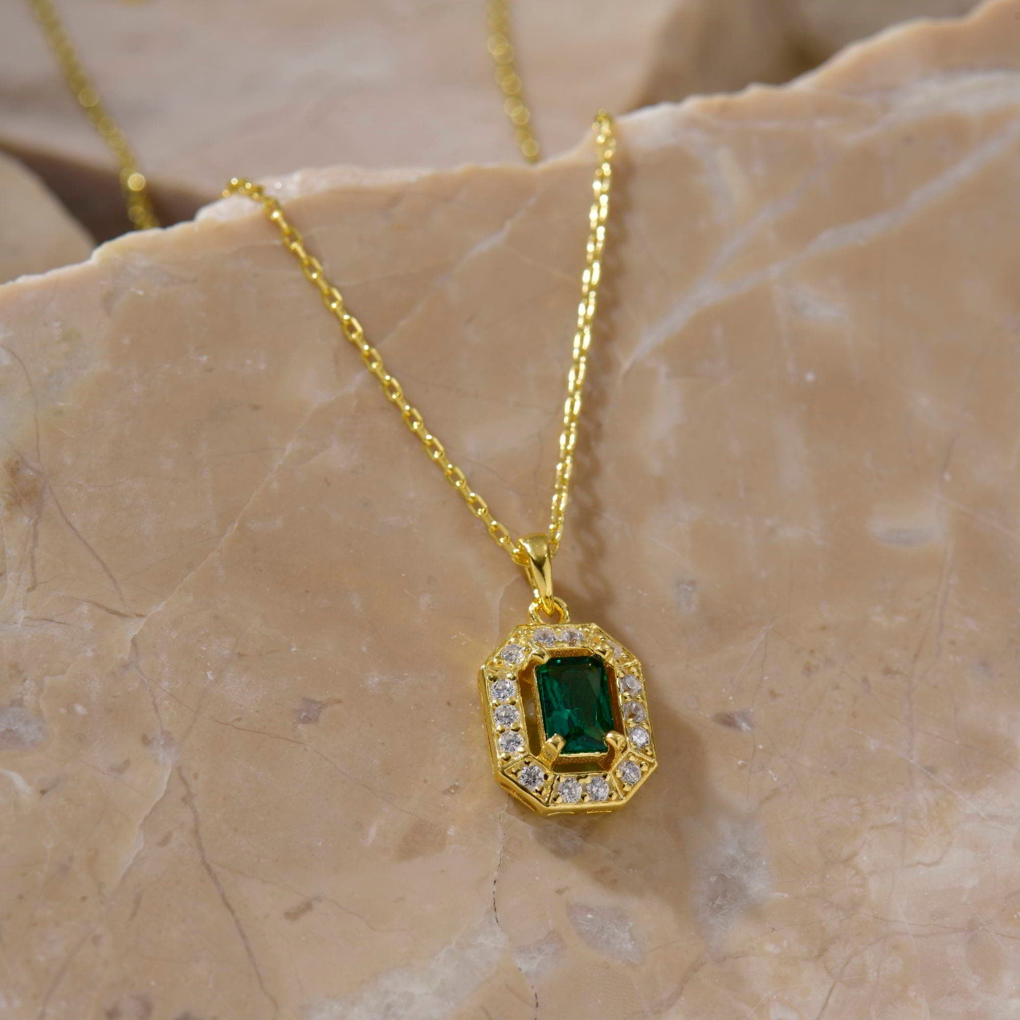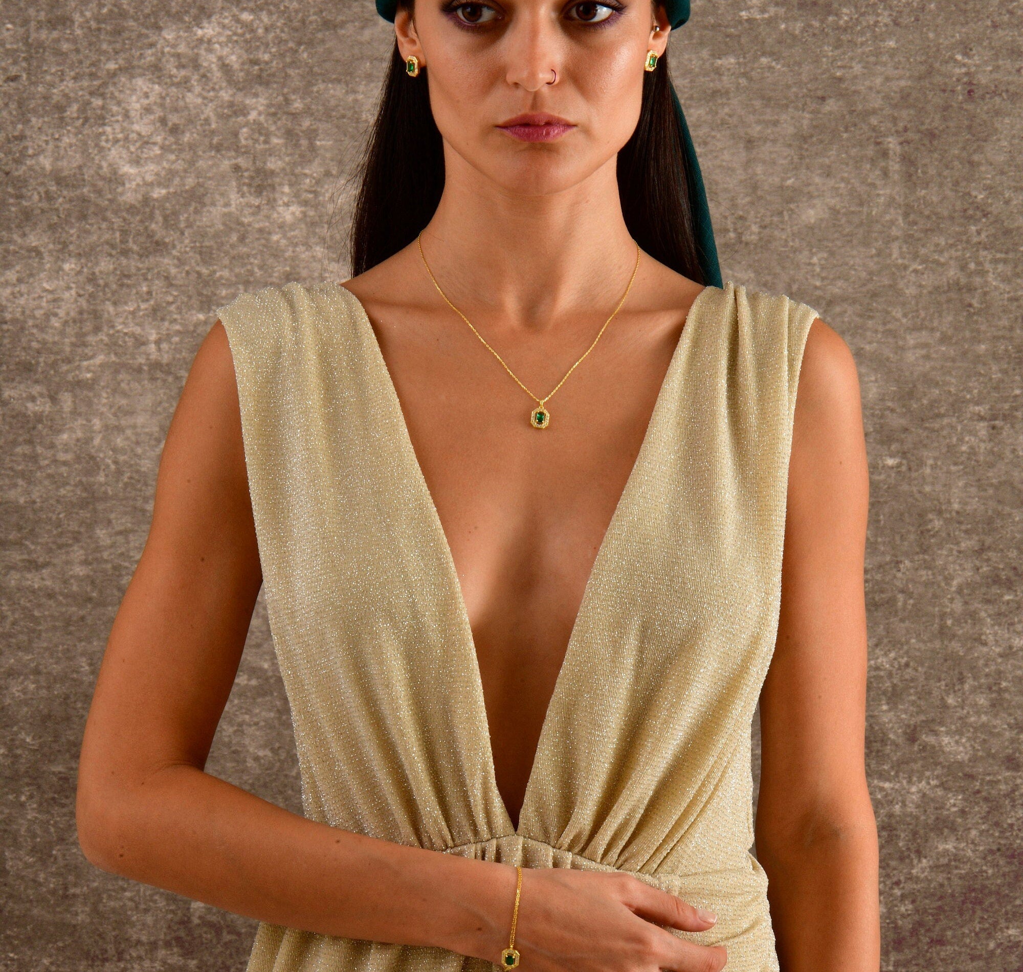 Dainty Silver Emerald Baguette Jewelry Set is what you're looking for!