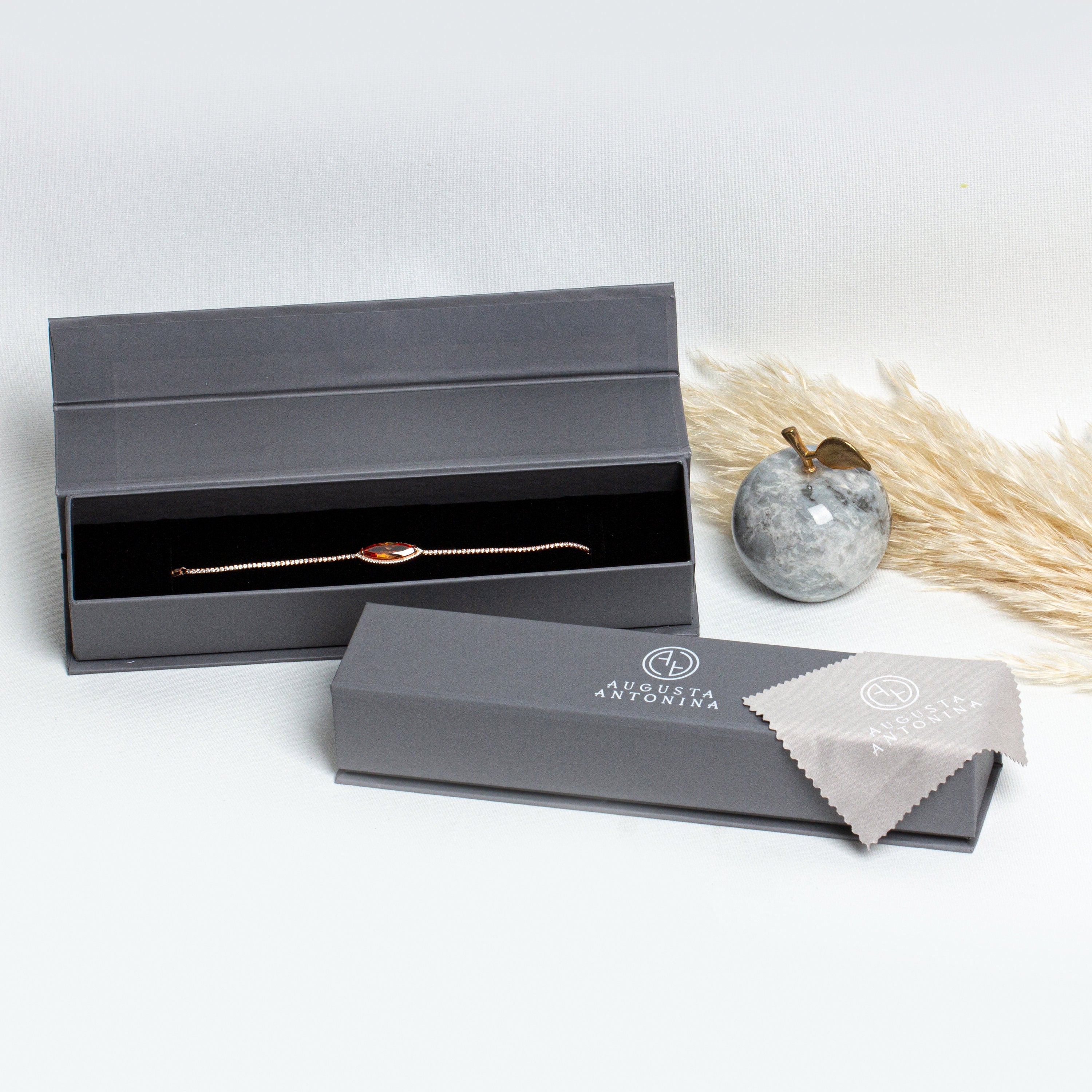 This gorgeous silver tennis bracelet with Orange Crystal Stone is handcrafted with love and care by the finest artists. This sterling silver Topaz Crystal Bracelet is Rose Gold Plated and made from 925 High Quality Solid Sterling Silver, high quality white cubic zirconia stones and orange crystal stone middle of it. It brings you more elegance and style to reflect your personality. Augusta Antonina made this gorgeous ellipse shaped orange swarovski tennis bracelet for you and your loved ones.