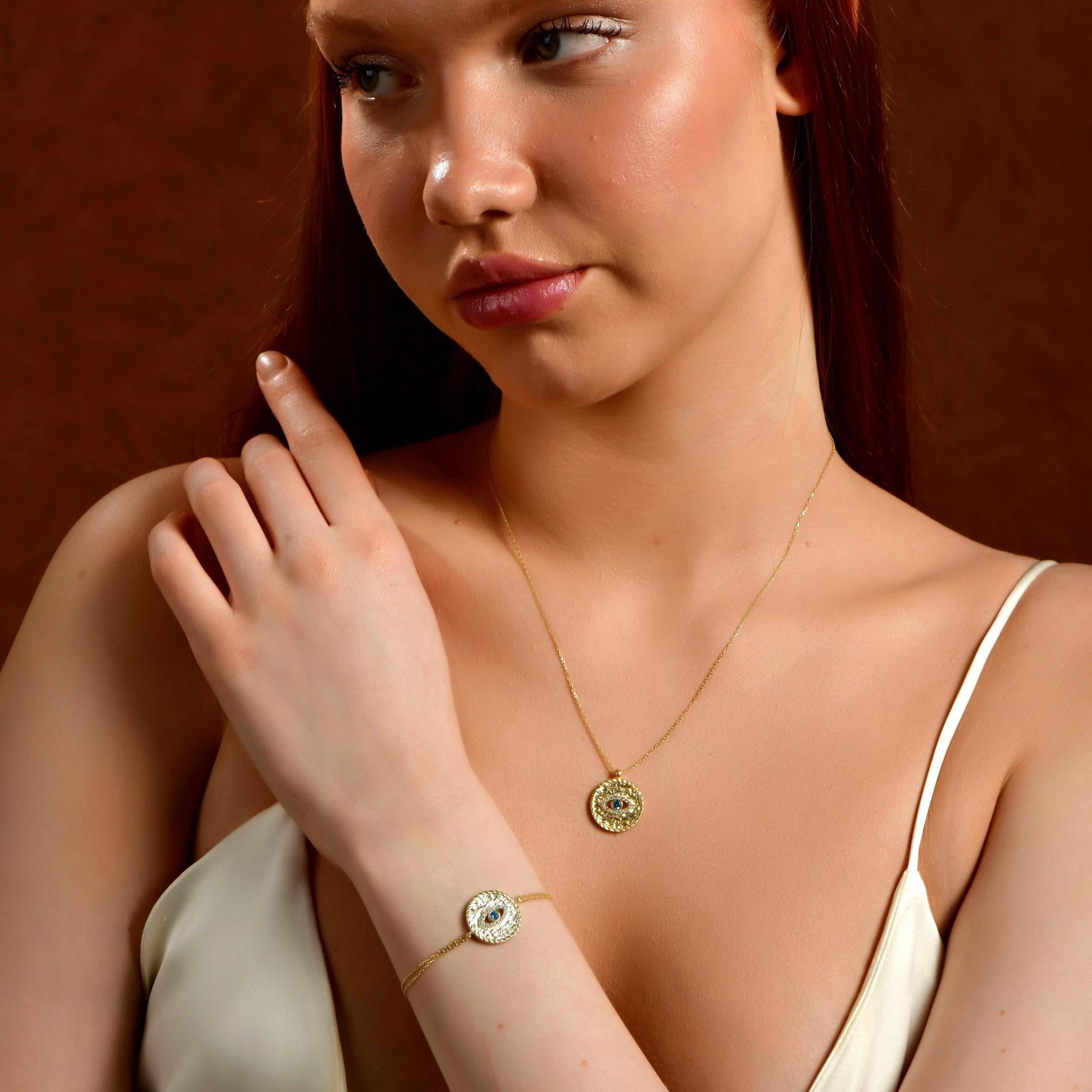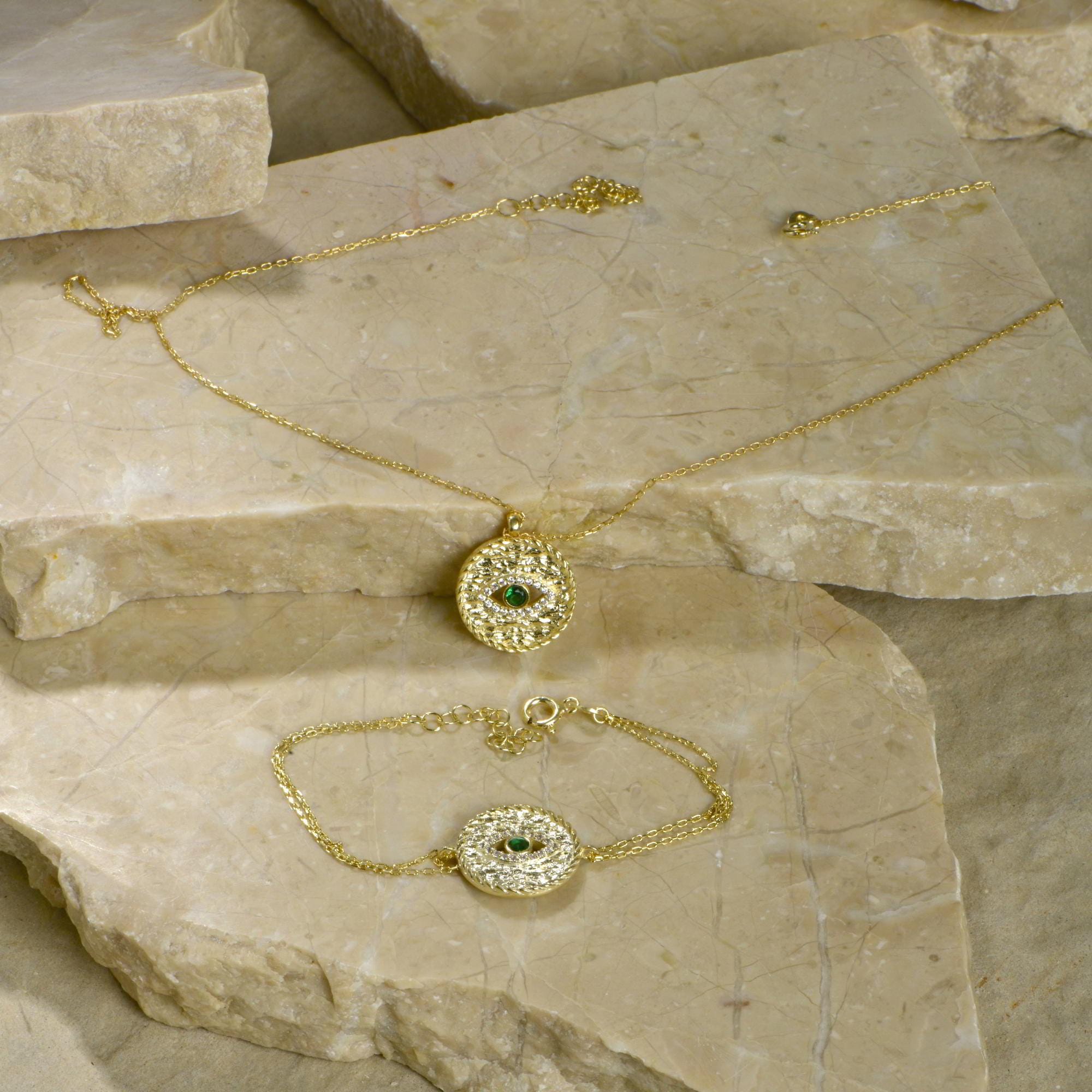 Looking to complete the set? Matching evil eye bracelets in both aquamarine and emerald tones are also available in our shop — perfect for creating a cohesive, elegant look.