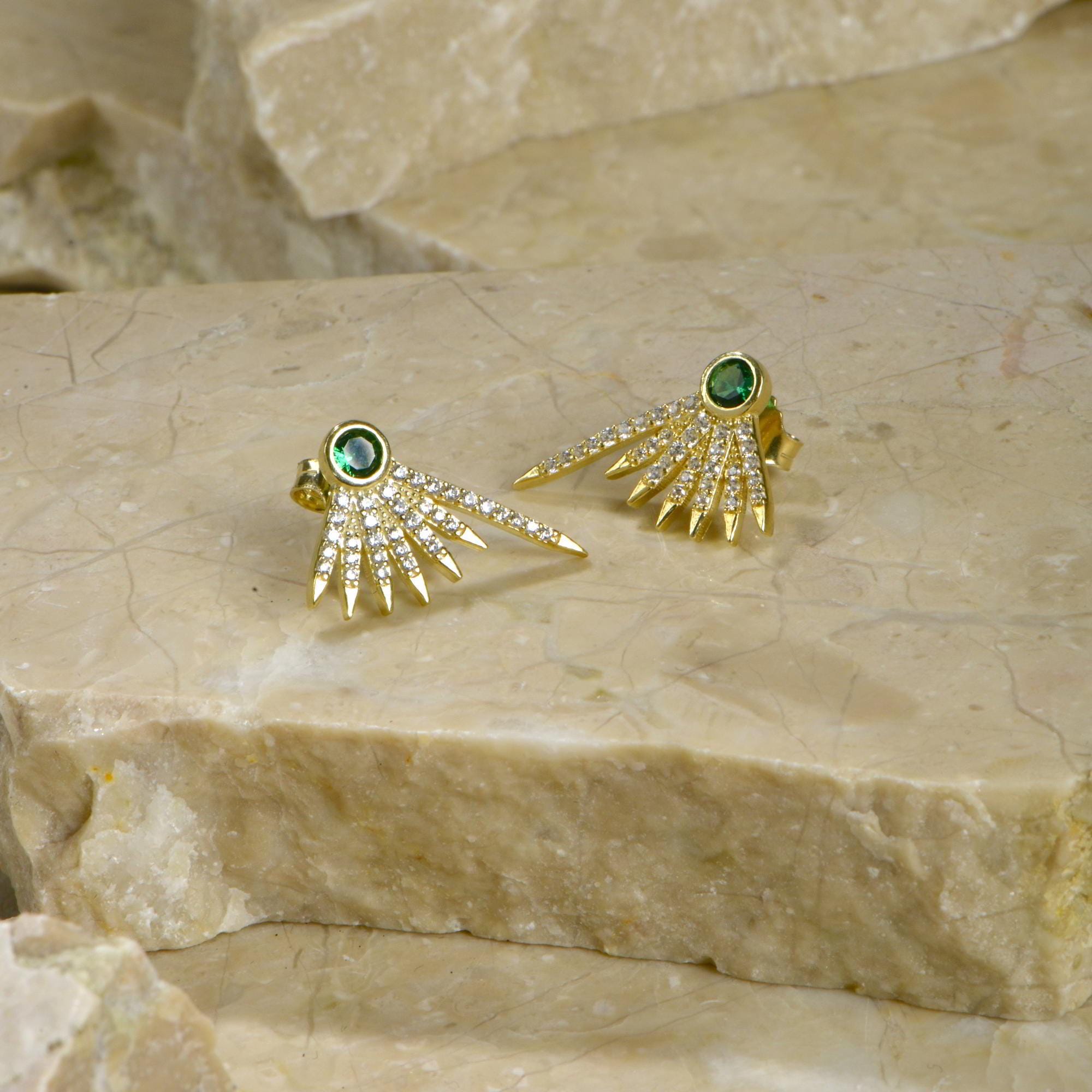 Handcrafted with love and precision, the dragonfly studs are made from 24K gold plated 925 solid sterling silver and adorned with high-quality white cubic zirconia stones. At the center, a rich green emerald birthstone: representing growth, renewal, and love! Adds a personal and symbolic touch, making them a thoughtful jewelry gift for her, or a special treat for yourself.